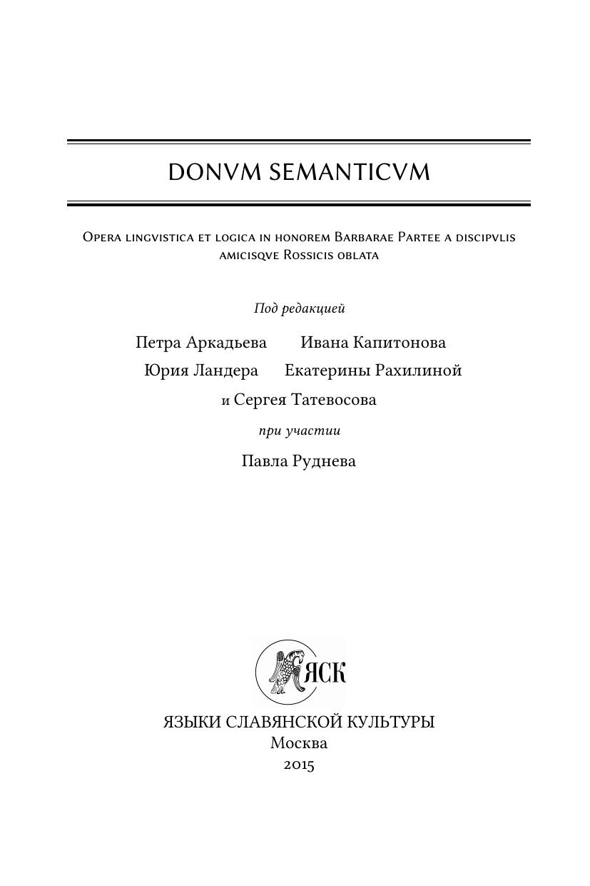 Donffm semanticffm: Opera lingffistica et logica in honorem Barbarae Partee a discipfflis amicisqffe Rossicis oblata