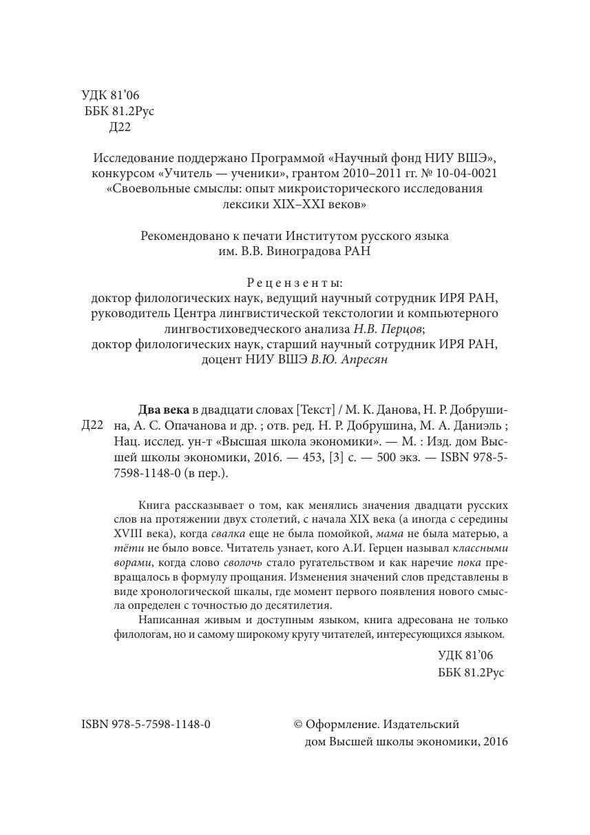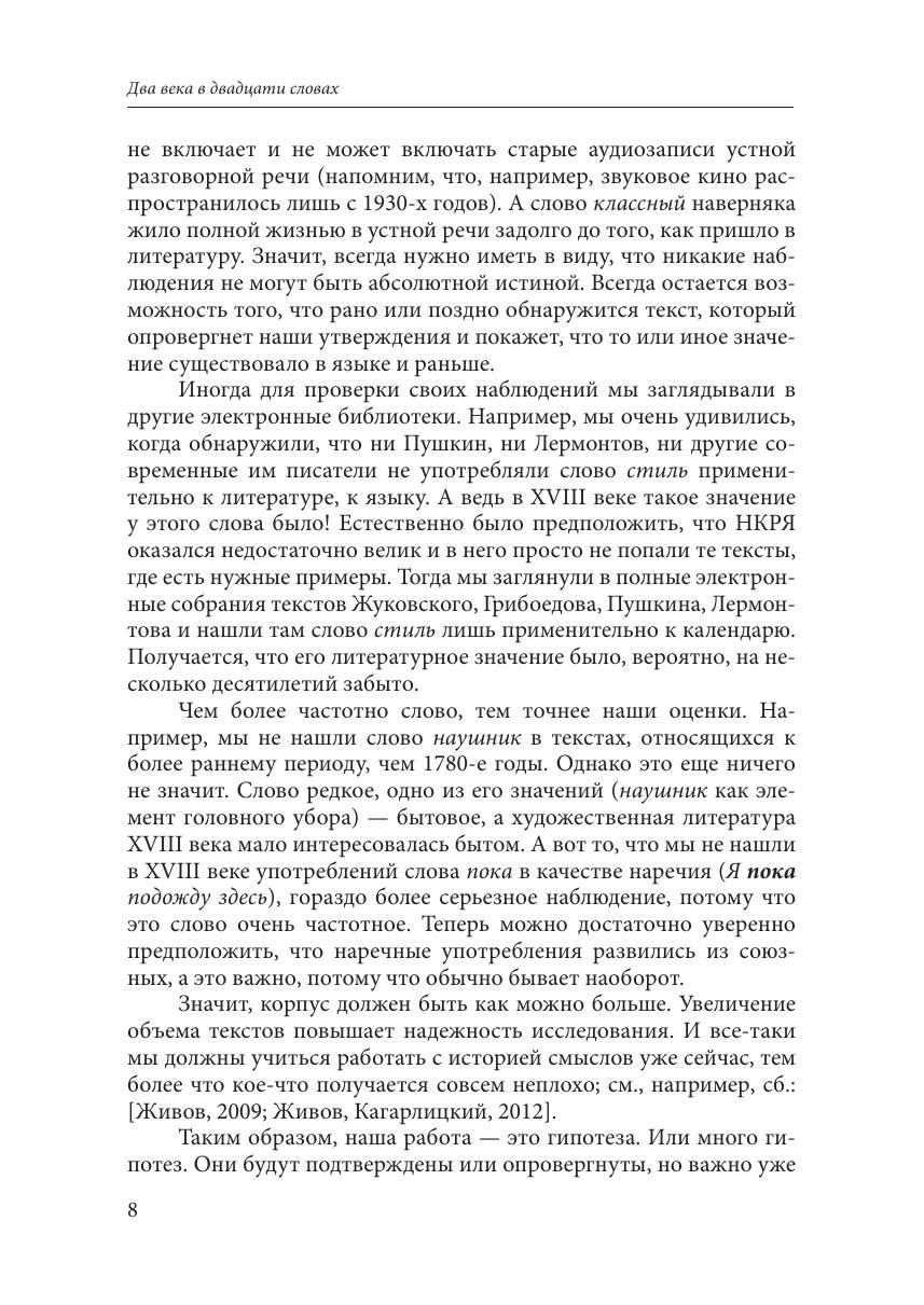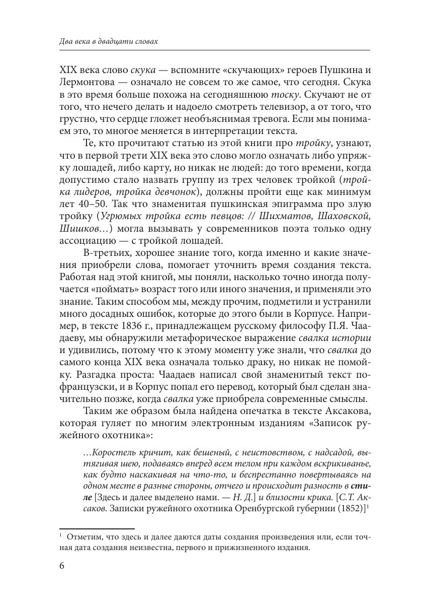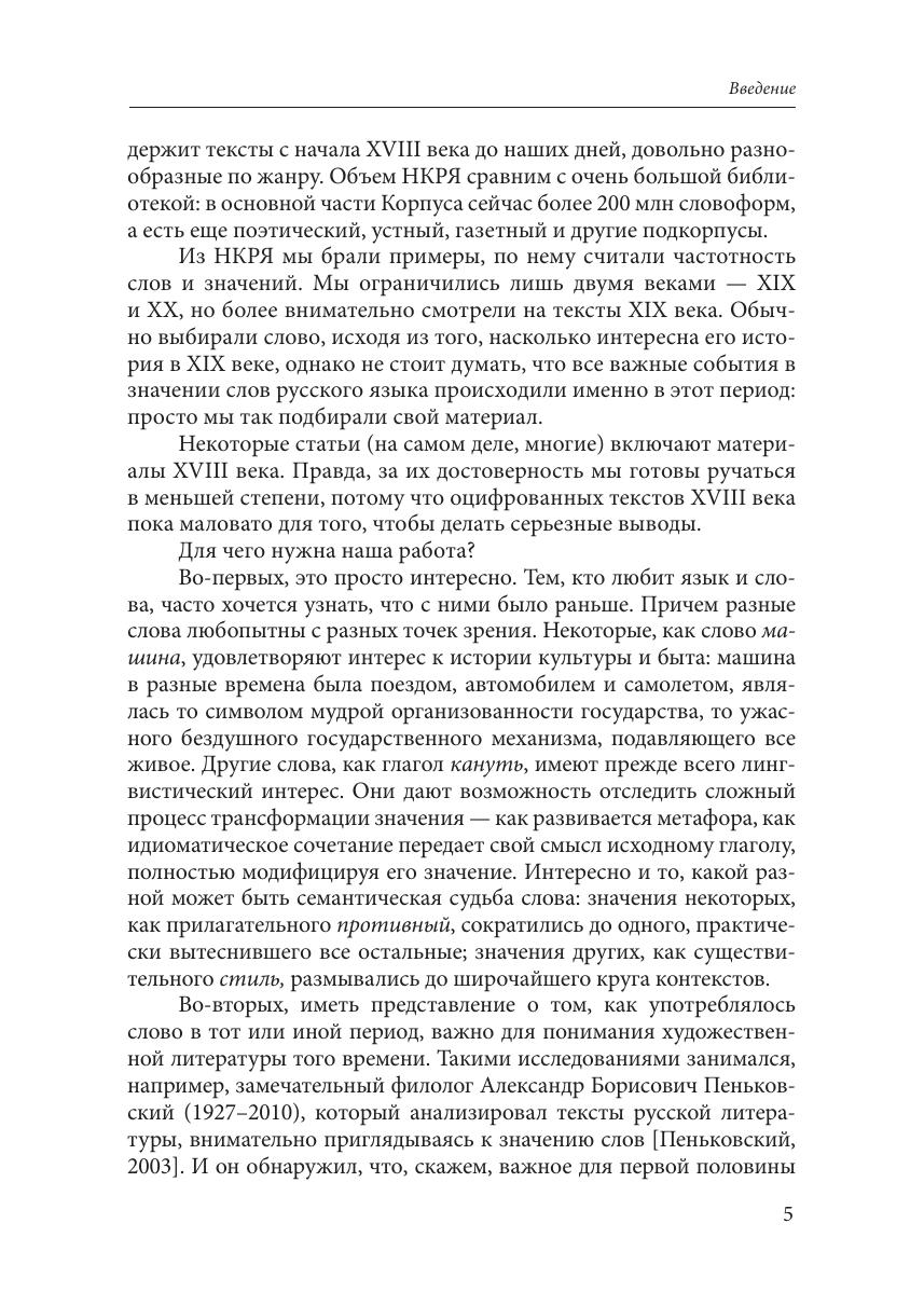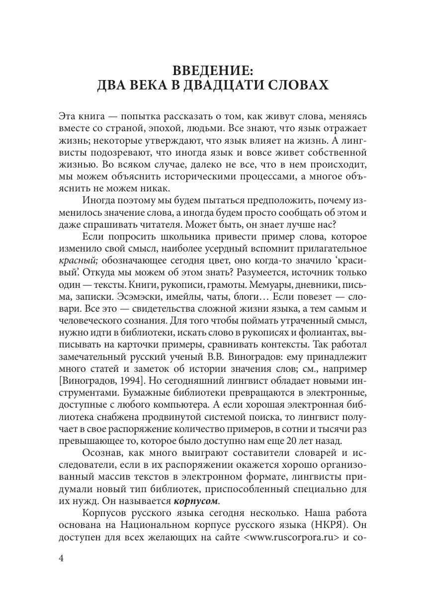 Книга рассказывает о том, как менялись значения двадцати русских слов на протяжении двух столетий, с начала XIX века (а иногда с середины XVIII века), когда свалка еще не была помойкой, мама не была матерью, а тёти не было вовсе. Читатель узнает, кого А.И. Герцен называл классными ворами, когда слово сволочь стало ругательством и как наречие пока превращалось в формулу прощания. Изменения значений слов представлены в виде хронологической шкалы, где момент первого появления нового смысла определен с точностью до десятилетия. Написанная живым и доступным языком, книга адресована не только филологам, но и самому широкому кругу читателей, интересующихся языком.