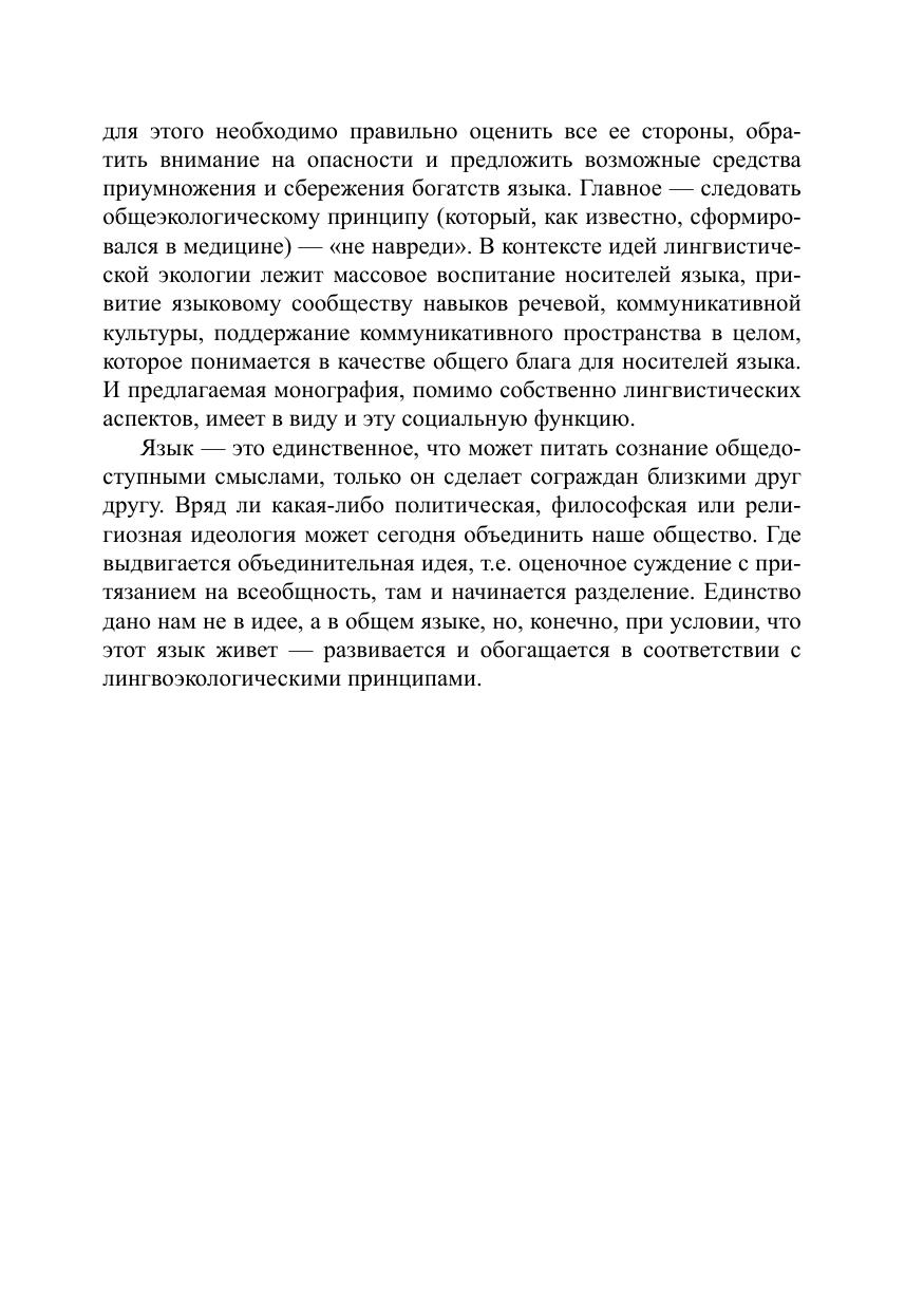 Монография посвящена современному состоянию русского языка и представляет собой филологическую рефлексию над языковыми процессами, происходящими в российском обществе постсоветского периода в контексте идей лингвистической экологии. Культура речи, следование риторическому канону интерпретируются в экологическом аспекте как часть здоровой окружающей среды современного человека.