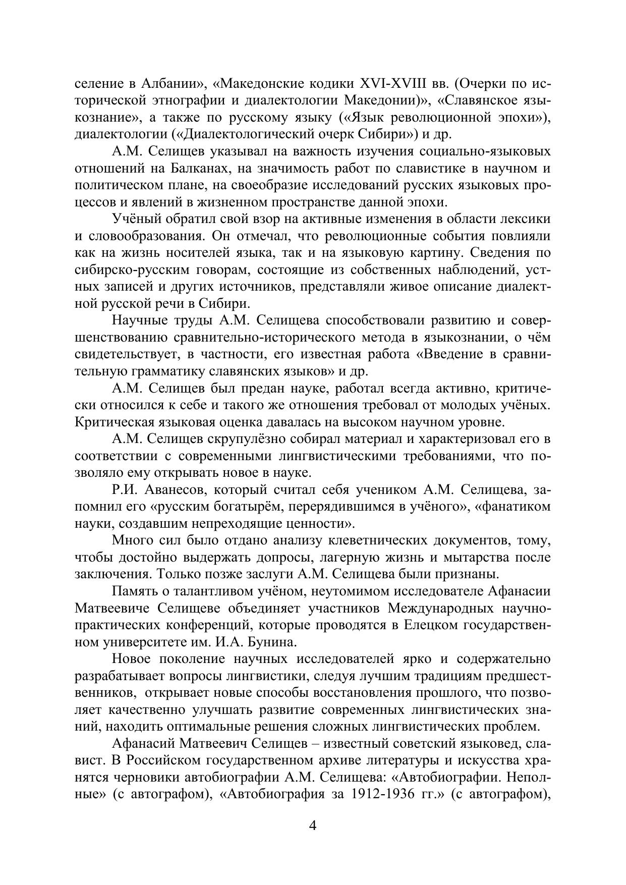 Данное исследование основано на архивных материалах, которые раскрывают значительный период жизни и деятельности известного лингвиста Афанасия Матвеевича Селищева (1886-1942).
