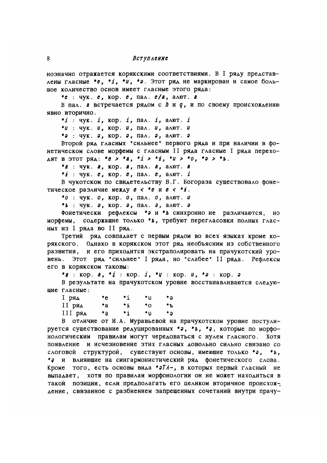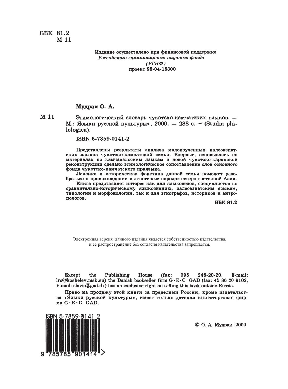 Представлены результаты анализа малоизученных палеоазиатских языков чукотско-камчатской семьи. Впервые, основываясь на материалах по камчадальским языкам и новой чукотско-карякской реконструкции сделано этимологическое сопоставление слов основного фонда чукотско-камчатского праязыка. Лексика и историческая фонетика данной семьи поможет разобраться в происхождении и этногенезе народов северо-восточной Азии. Книга представляет интерес как для языковедов, специалистов по сравнительно-историческому языкознанию, палеоазиатским языкам, типологии и морфонологии, так и для этнографов, историков и антропологов.