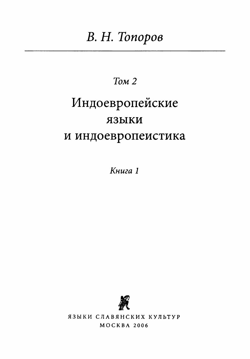 Настоящее исследование предполагает три тома общим объемом более 160 авторских листов. Исследуемый материал - лексика индоевропейских языков. В центре книги - этимология славянских, балтийских, индоиранских, италийских языков, предлагаются также и этимологии лексики древнегреческого, фракийского, иллирийского, тохарского, хеттского языков. Объединяющей идеей исследования являются реконструкция и семантика, т. е. определение смысловой мотивации обозначения анализируемого слова. Реализация этих идей имеет непосредственное отношение к анализу весьма древнего пласта индоевропейского праязыка и соображениям и гипотезам, относящимся к ментальности носителей этих языков и процессам порождения смыслов и их эволюции в более поздние эпохи. Этот круг задач и соответствующих проблем органически связан и с другими нежели лексика и семантика уровнями языка, прежде всего к генезису некоторых грамматических категорий. Книга рассчитана на специалистов в области индоевропейских языков, типологии, культурной антропологии, мифологии и ритуала.