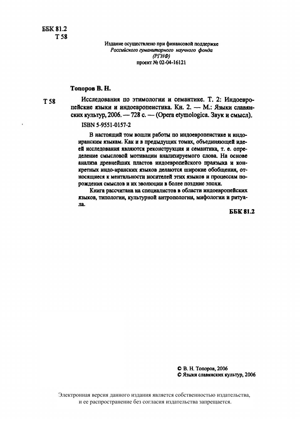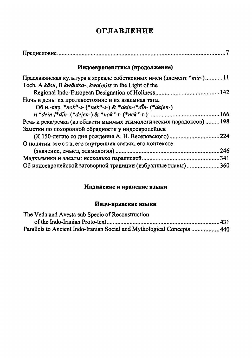 В настоящий том вошли работы по индоевропеистике и индоиранским языкам. Как и в предыдущих томах, объединяющей идеей исследования являются реконструкция и семантика, т. е. определение смысловой мотивации анализируемого слова. На основе анализа древнейших пластов индоевропейского праязыка и конкретных индоиранских языков делаются широкие обобщения, относящиеся к ментальности носителей этих языков и процессам порождения смыслов и их эволюции в более поздние эпохи. Книга рассчитана на специалистов в области индоевропейских языков, типологии, культурной антропологии, мифологии и ритуала.