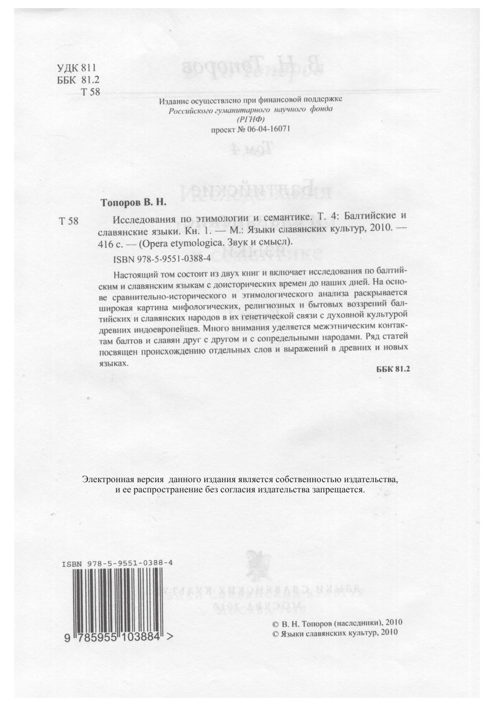 Исследования по этимологии и семантике. Т. 4: Балтийские и славянские языки. Кн. 1