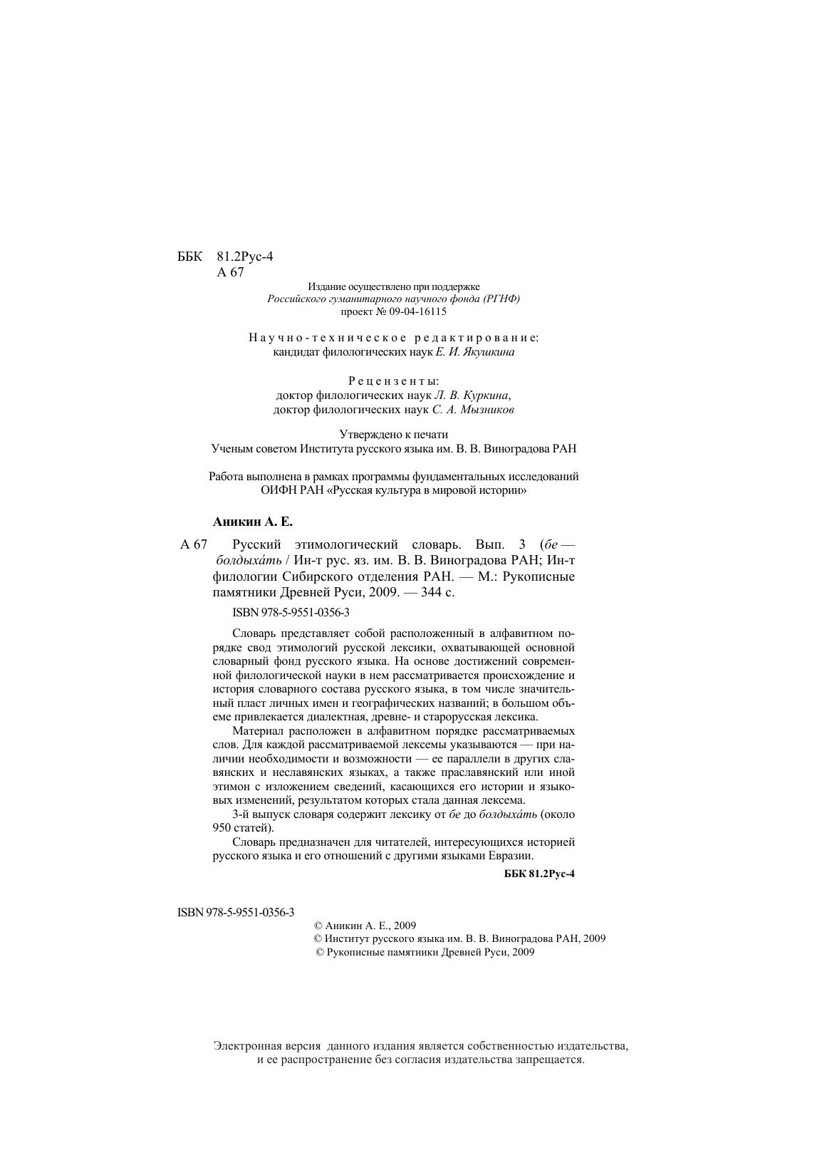 Русский этимологический словарь. Вып. 3 (бе — болдыхáть)