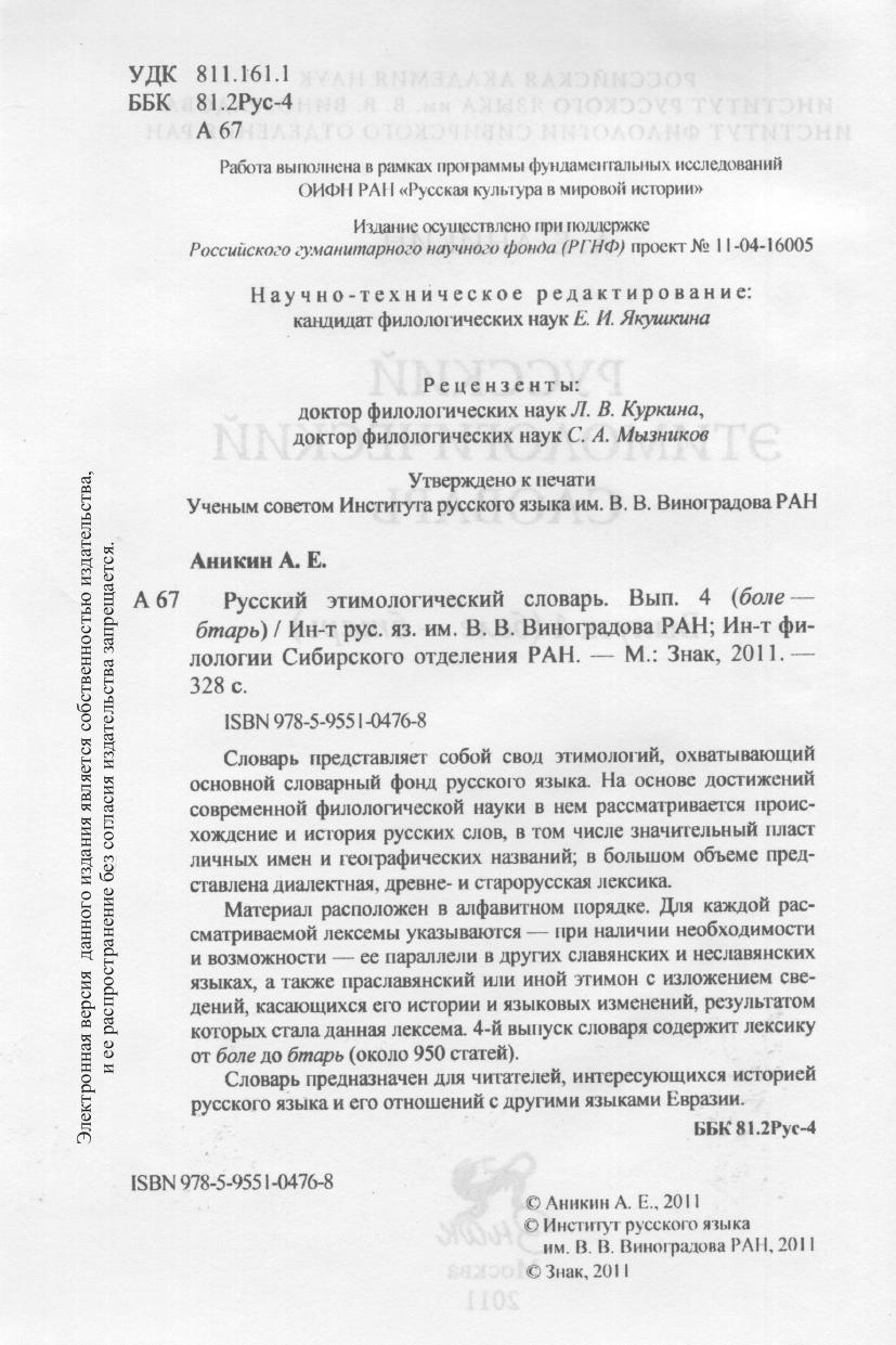 Русский этимологический словарь. Вып. 4 (боле — бтарь)