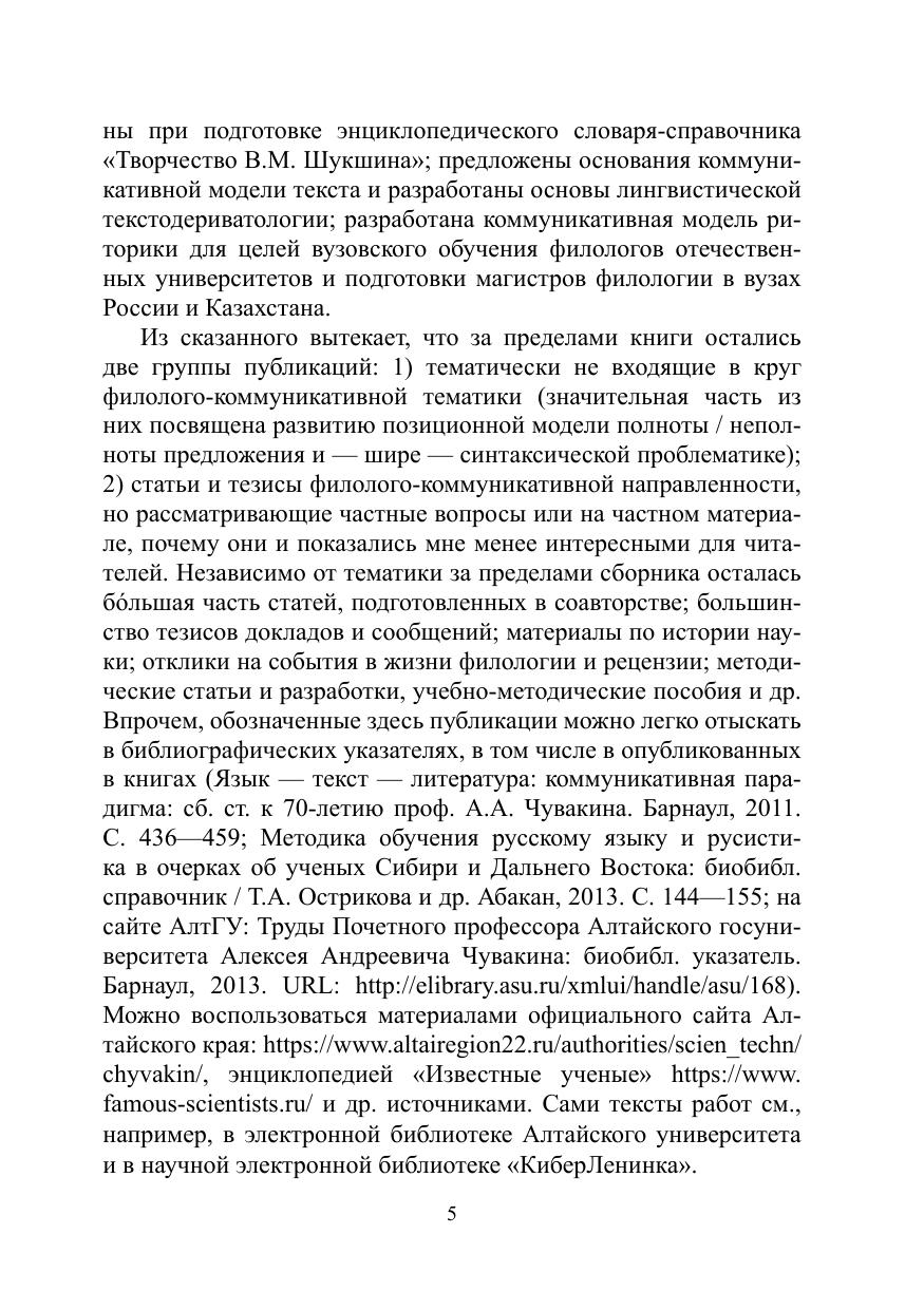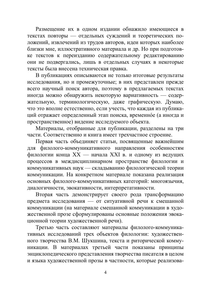 Книга включает ряд работ автора по общей и русской филологии, опубликованных преимущественно в середине 1990-х годов — XXI в. Рассматриваются проблемы объекта современной филологии, взаимодействия филологии и коммуникативных наук; выдвигается гипотеза о построении филологической теории коммуникации, на большом фактическом материале демонстрируется ряд филологических категорий коммуникации (многоязычие, диалогичность, эвокативность, интерпретативность). Большое место занимает рассмотрение выдвинутых исследователем феноменов ситуативного типа речи и смешанной коммуникации. Значительное место уделено художественному творчеству В.М. Шукшина, тексту, риторической коммуникации. В книге представлена проекция теоретических результатов на сферу высшего филологического образования и область энциклопедической лексикографии: А.А. Чувакин является автором и научным редактором университетских учебных пособий по основам филологии, теории текста, риторике, филологии в ее взаимосвязи с коммуникативными науками, а также научным ре дактором энциклопедического словаря-справочника «Творчество В.М. Шук шина». Книга адресована широкому кругу филологов: преподавателям и студентам, аспирантам и магистрантам, всем, кто интересуется состоянием и судьбами современной филологии.