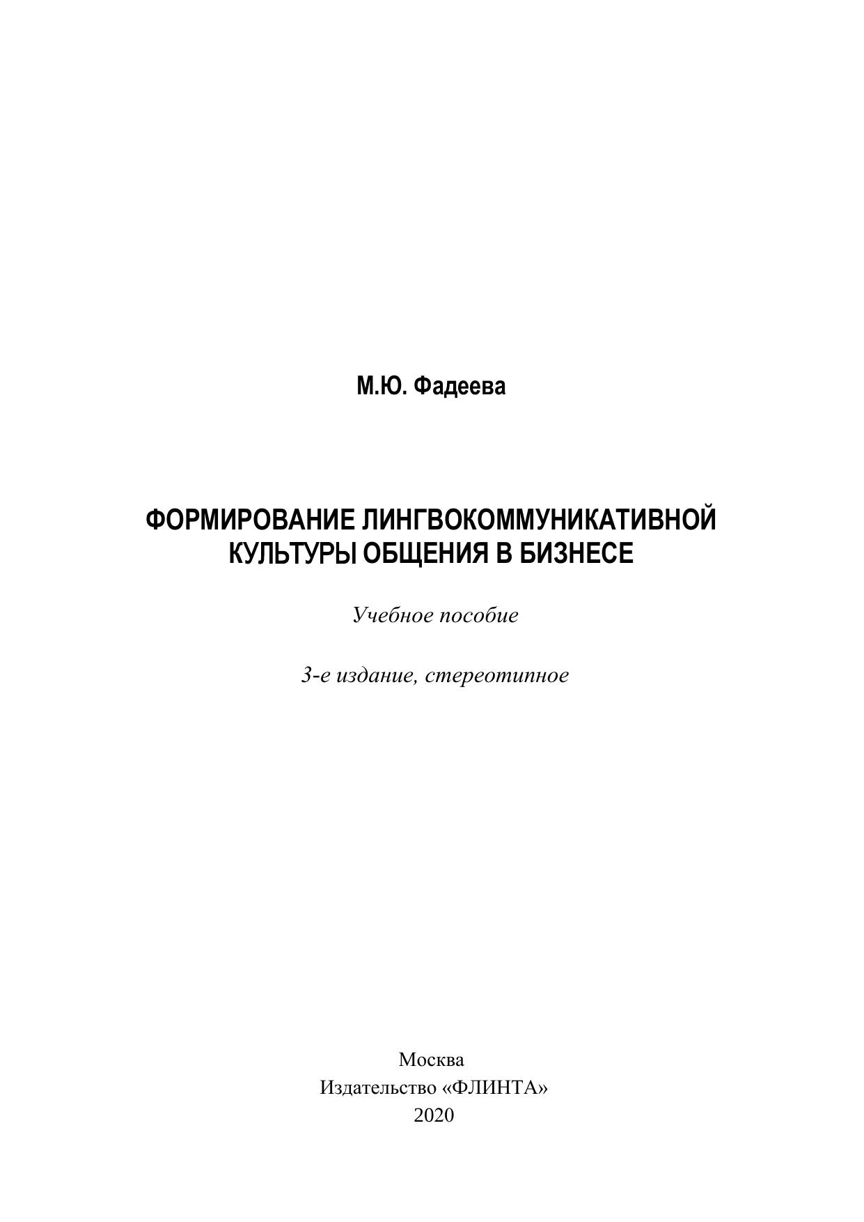 Формирование лингвокоммуникативной культуры общения в бизнесе
