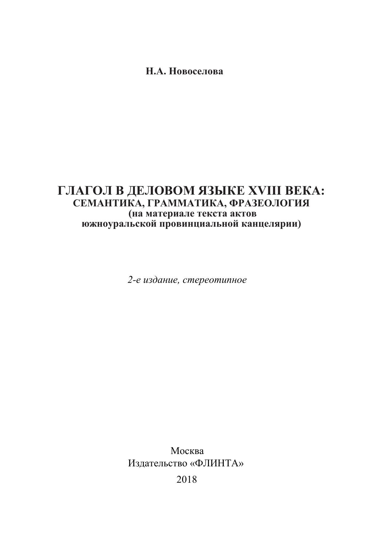 Глагол в деловом языке XVIII века: семантика, грамматика, фразеология