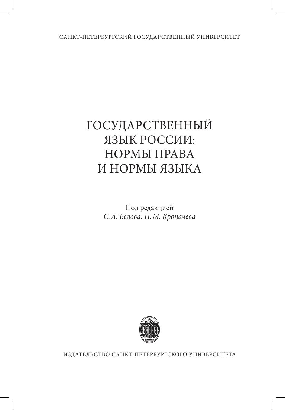 Монография посвящена проблемам функционирования русского языка как государственного языка Российской Федерации, в том числе вопросам правового регулирования порядка и условий его использования. Материалом для монографии послужили результаты исследований, проводимых в НИИ проблем государственного языка Санкт-Петербургского государственного университета, данные анализа российской судебной и иной правоприменительной практики, зарубежного опыта правового регулирования и функционирования языков в качестве государственных.
