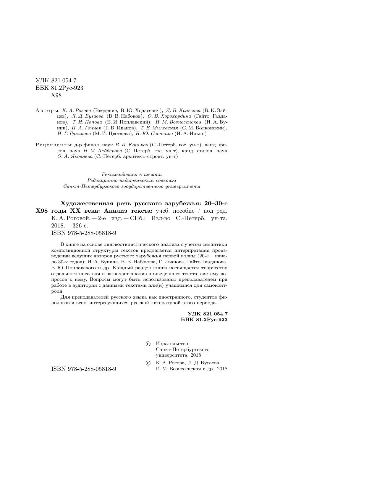 Художественная речь русского зарубежья: 20–30-е годы XX века: Анализ текста