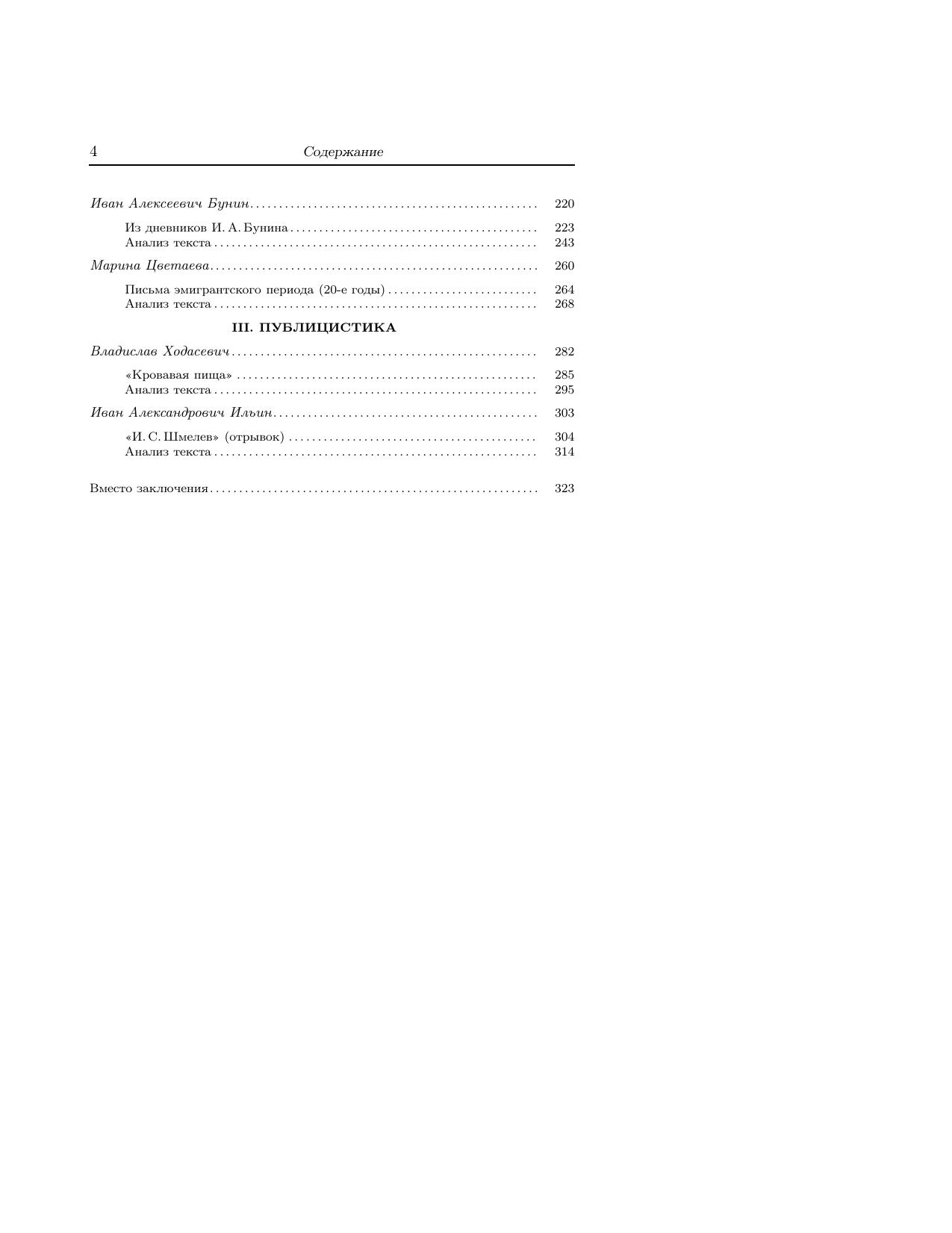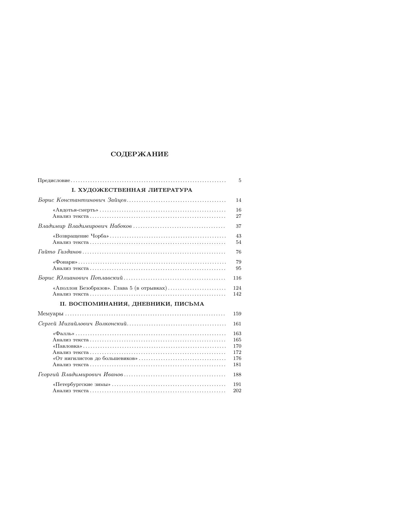 В книге на основе лингвостилистического анализа с учетом семантики композиционной структуры текстов предлагается интерпретация произведений ведущих авторов русского зарубежья первой волны (20-е— начало 30-х годов): И. А. Бунина, В. В.Набокова, Г. Иванова, Гайто Газданова, Б. Ю. Поплавского и др. Каждый раздел книги посвящается творчеству отдельного писателя и включает анализ приведенного текста, систему вопросов к нему. Вопросы могут быть использованы преподавателем при работе в аудитории с данными текстами или(и) учащимися для самоконтроля.