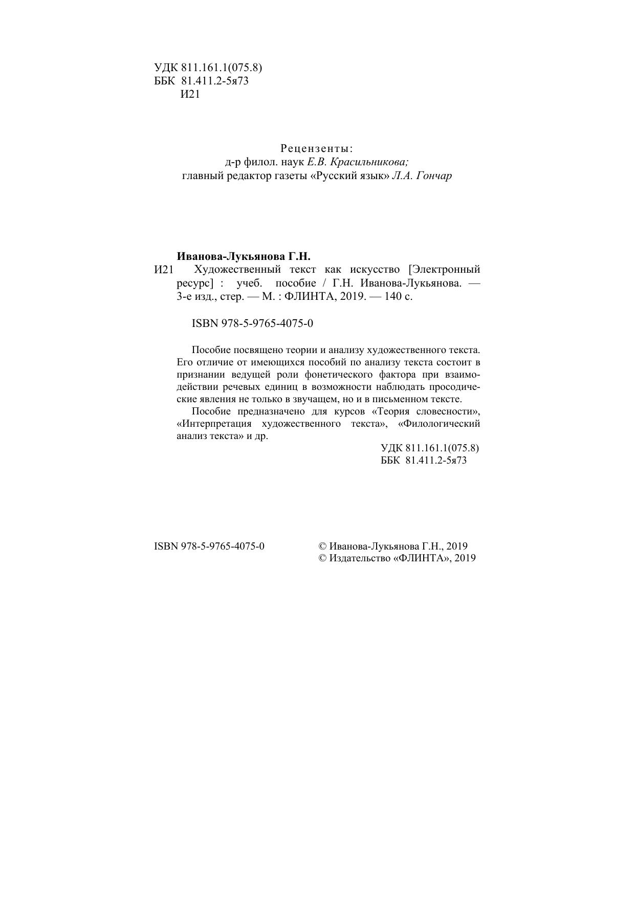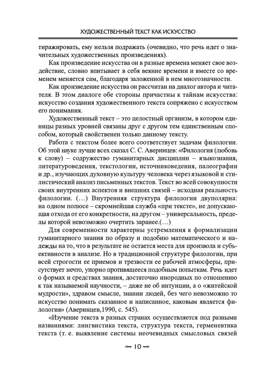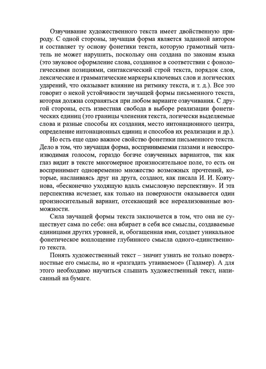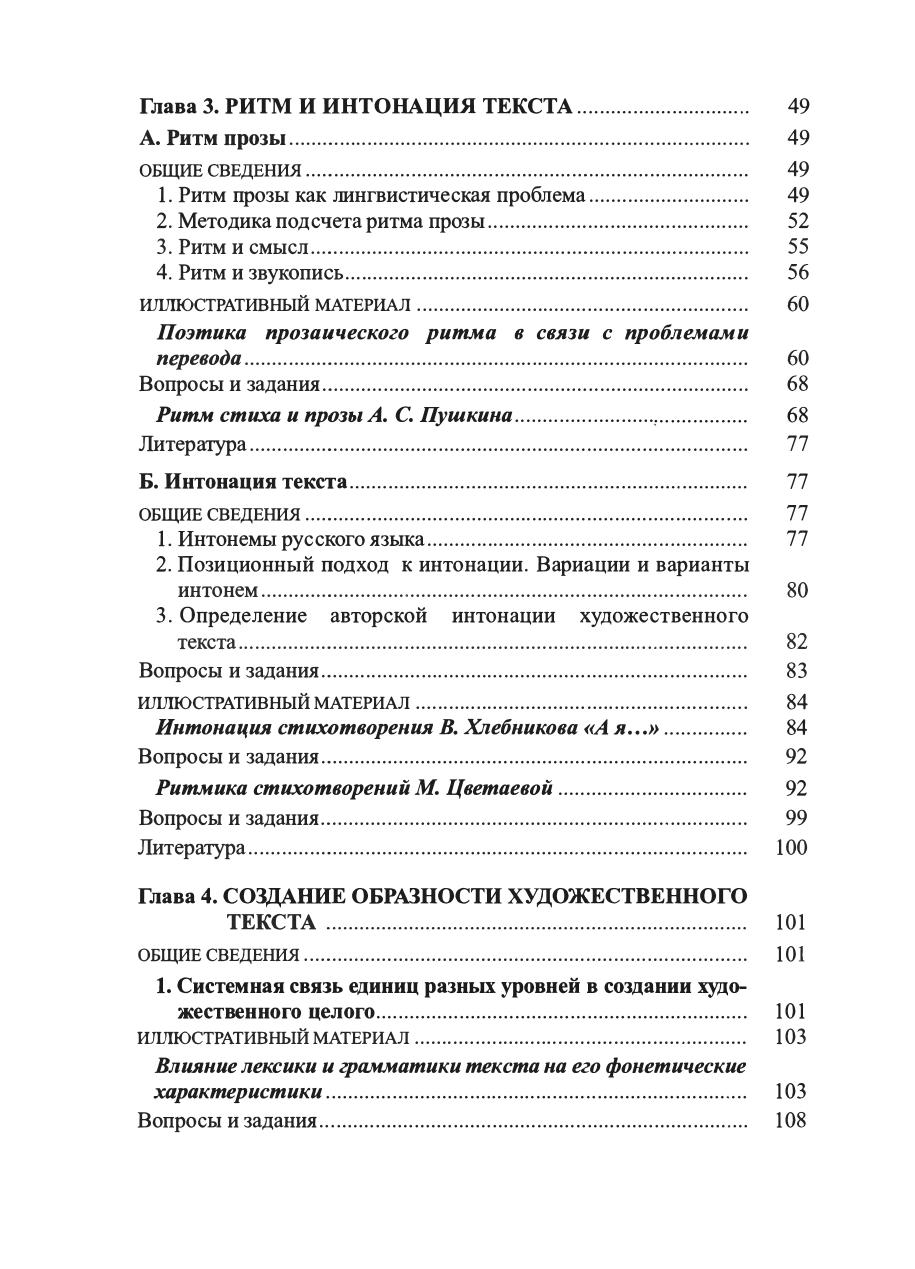 Пособие посвящено теории и анализу художественного текста. Его отличие от имеющихся пособий по анализу текста состоит в признании ведущей роли фонетического фактора при взаимодействии речевых единиц в возможности наблюдать просодические явления не только в звучащем, но и в письменном тексте.