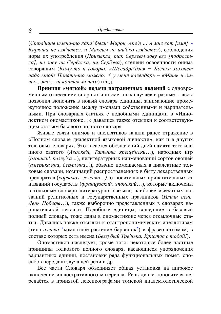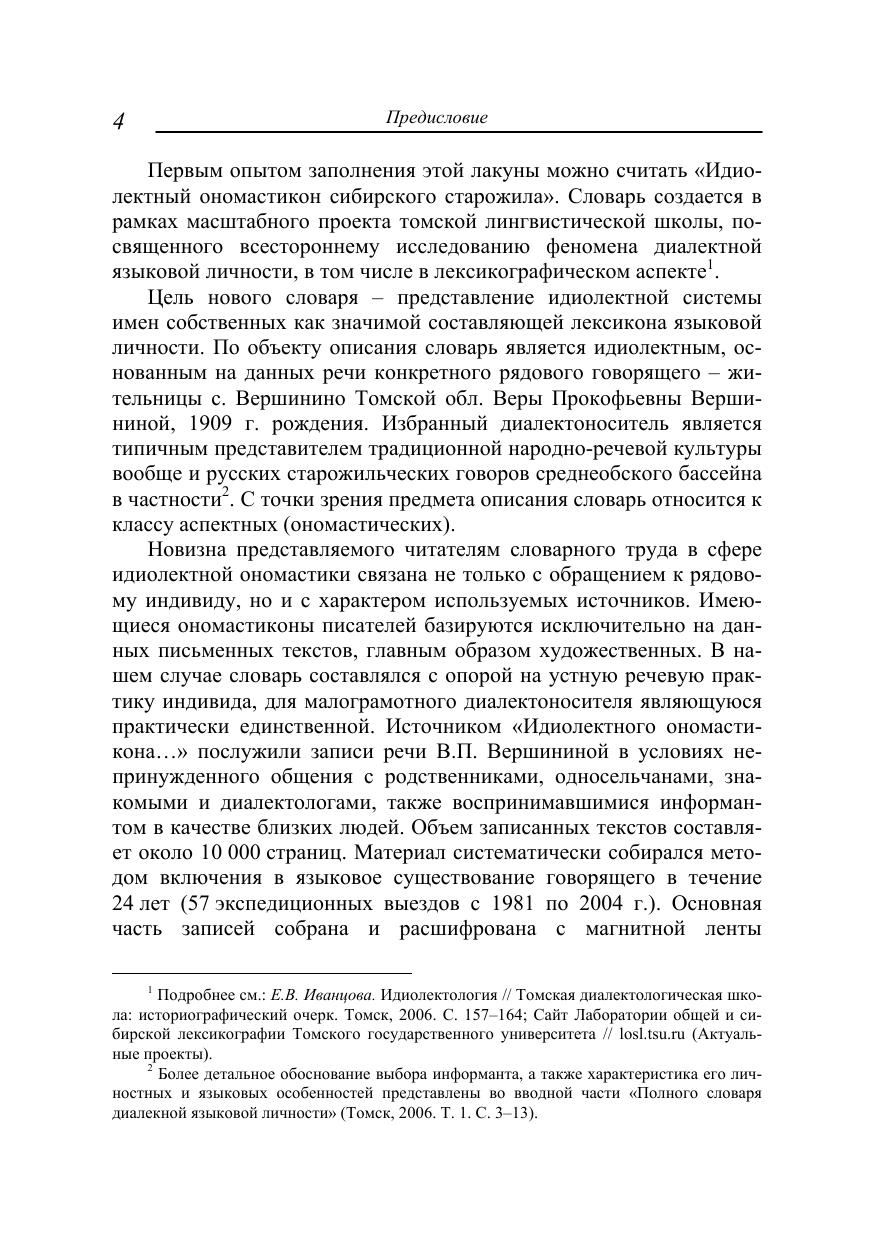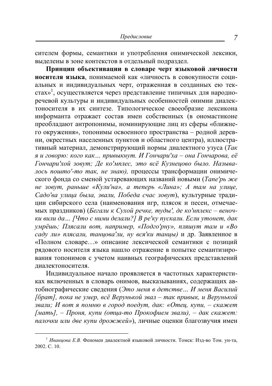 Словарь продолжает серию аспектных изданий, дополняющих толковый четырехтомный «Полный словарь диалектной языковой личности» (Томск, 2006-2012). Предметом лексикографирования в словаре является онимическая лексика в лексиконе сибирской крестьянки В.П. Вершининой, типичного носителя русских старожильческих говоров Сибири. В трех разделах ономастикона отражены антропонимы (имена, отчества, фамилии, прозвища), топонимы (названия городов, деревень, улиц, водных источников) и прочие онимы (обозначения видов продуктов и культурных растений, моделей техники, клички животных и др.) в индивидуальном лексиконе. Для специалистов в области лингвистики, а также всех тех, кого интересуют народная речь и культура.
