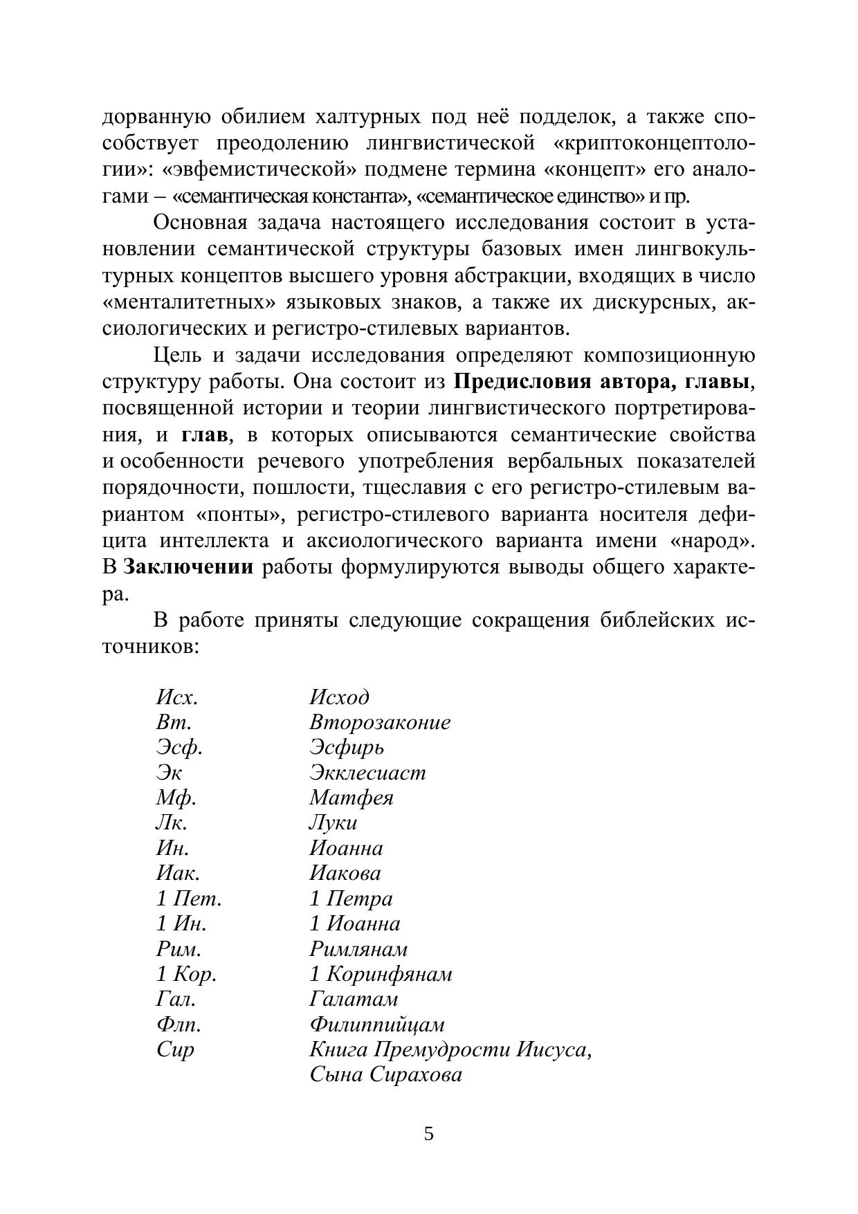 В монографии на материале научного, религиозного и художественного дискурсов, лексикографии, корпусной лингвистики, Интернет-коммуникации, паремического фонда и афористики исследуются семантические свойства и речевое употребление имен культурно значимых смыслов русского языка: порядочности, пошлости, тщеславия, дефицита интеллекта и народа.