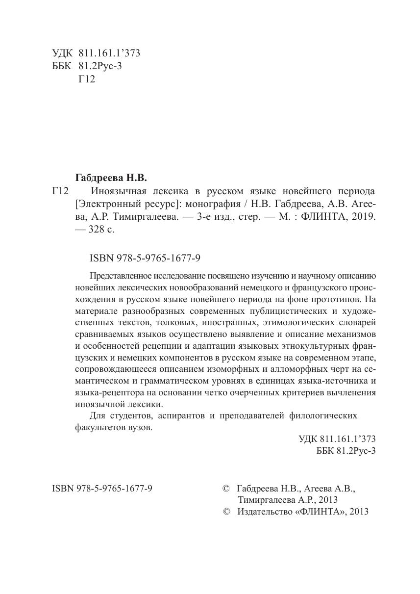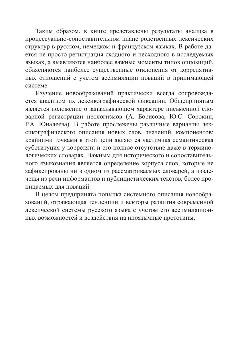 Представленное исследование посвящено изучению и научному описанию новейших лексических новообразований немецкого и французского происхождения в русском языке новейшего периода на фоне прототипов. На материале разнообразных современных публицистических и художественных текстов, толковых, иностранных, этимологических словарей сравниваемых языков осуществлено выявление и описание механизмов и особенностей рецепции и адаптации языковых этнокультурных французских и немецких компонентов в русском языке на современном этапе, сопровождающееся описанием изоморфных и алломорфных черт на семантическом и грамматическом уровнях в единицах языка-источника и языка-рецептора на основании четко очерченных критериев вычленения иноязычной лексики. Для студентов, аспирантов и преподавателей филологических факультетов вузов.