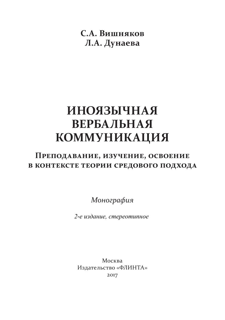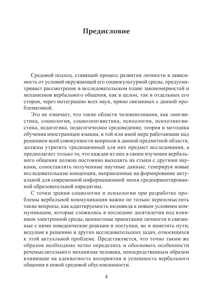 Иноязычная вербальная коммуникация: преподавание, изучение, усвоение в контексте теории средового подхода: монография
