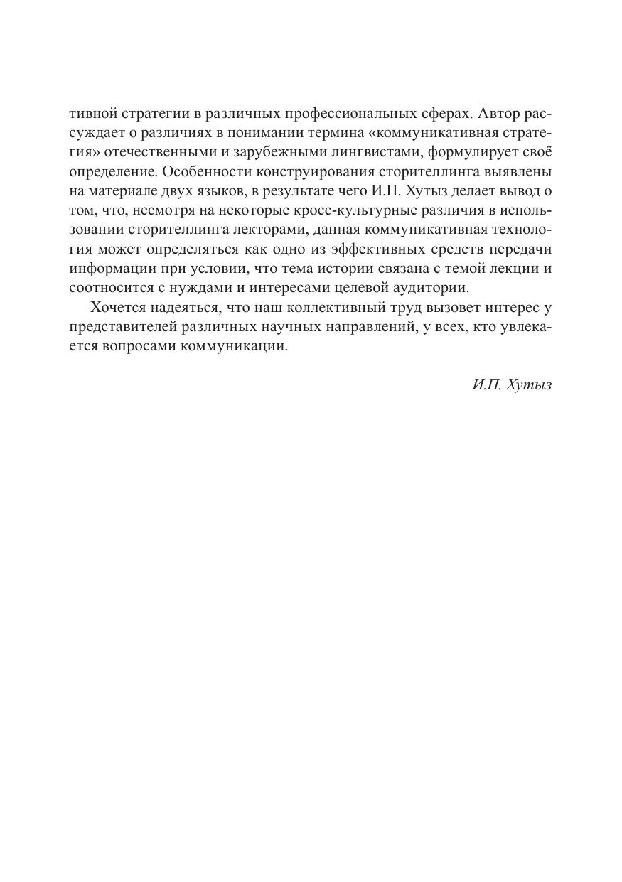 исключительно для изучаемых авторами жанров, например, роль коммуникативной стратегии сторителлинга в лекции, жанре академического дискурса. Адресуется специалистам-языковедам, студентам старших курсов, магистрантам и аспирантам соответствующих направлений, а также всем, кто интересуется вопросами институциональной коммуникации в контексте действительности.