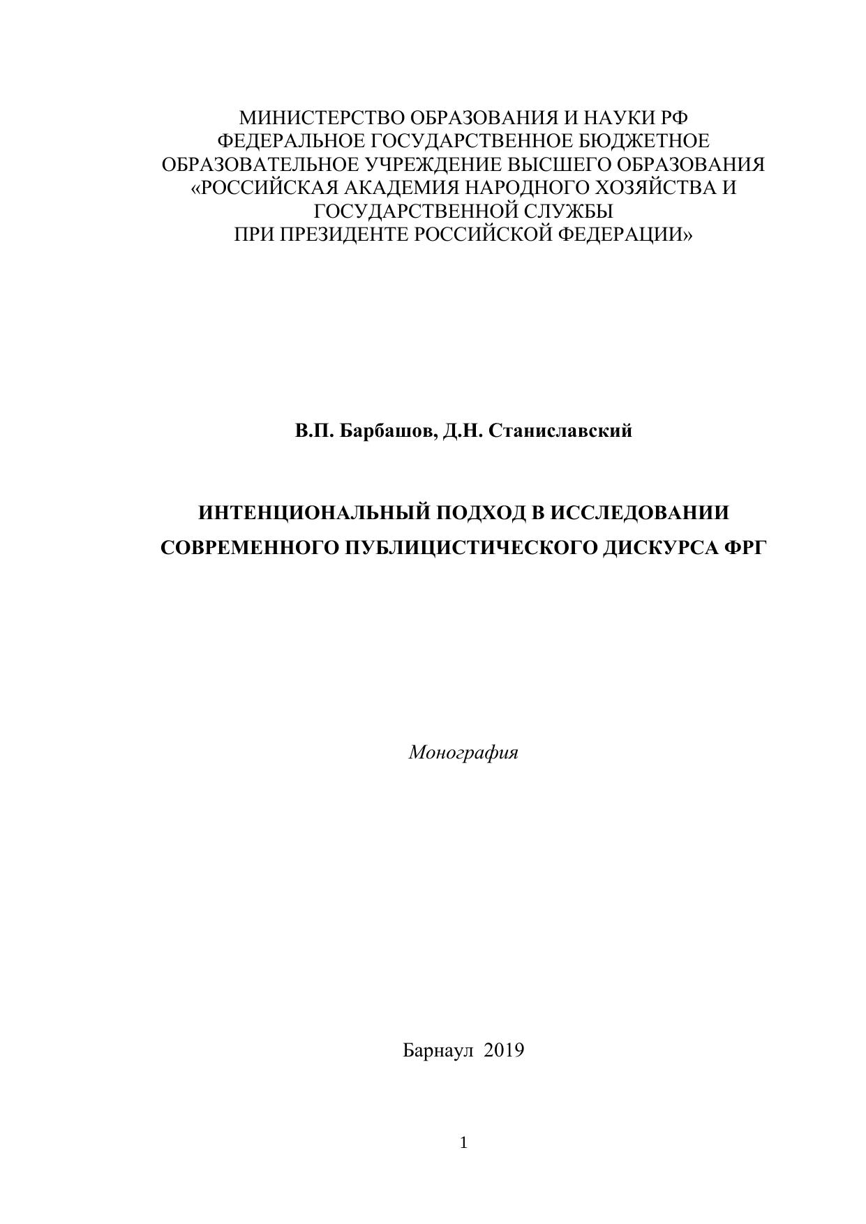 Интенциональный подход в исследовании современного публицистического дискурса ФРГ