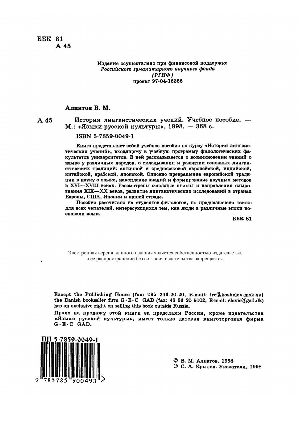 Книга представляет собой учебное пособие по курсу «История лингвистических учений», входящему в учебную программу филологических факультетов университетов. В ней рассказывается о возникновении знаний о языке у различных народов, о складывании и развитии основных лингвистических традиций: античной и средневековой европейской, индийской, китайской, арабской, японской. Описано превращение европейской традиции в науку о языке, накопление знаний и формирование научных методов в XVI-ХVIII веках. Рассмотрены основные школы и направления языкознания XIX–XX веков, развитие лингвистических исследований в странах Европы, США, Японии и нашей стране. Пособие рассчитано на студентов-филологов, но предназначено также для всех читателей, интересующихся тем, как люди в различные эпохи познавали язык.