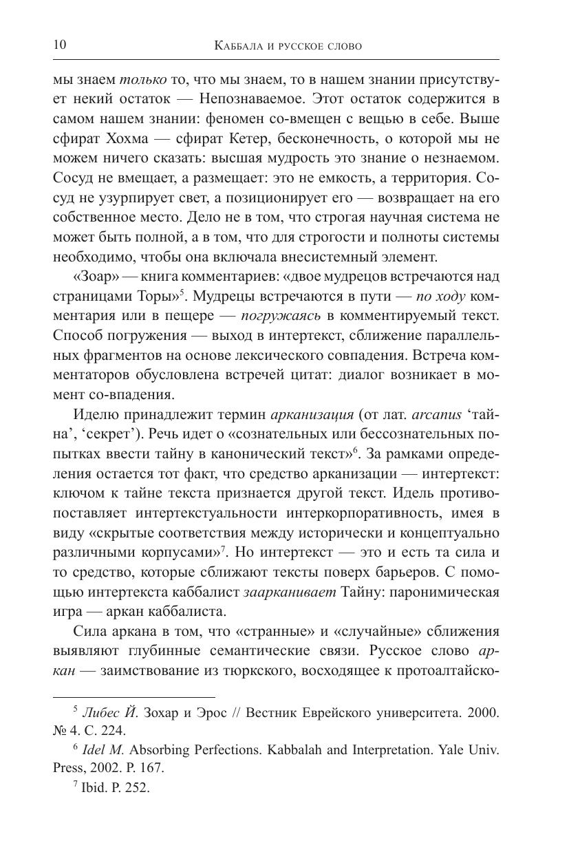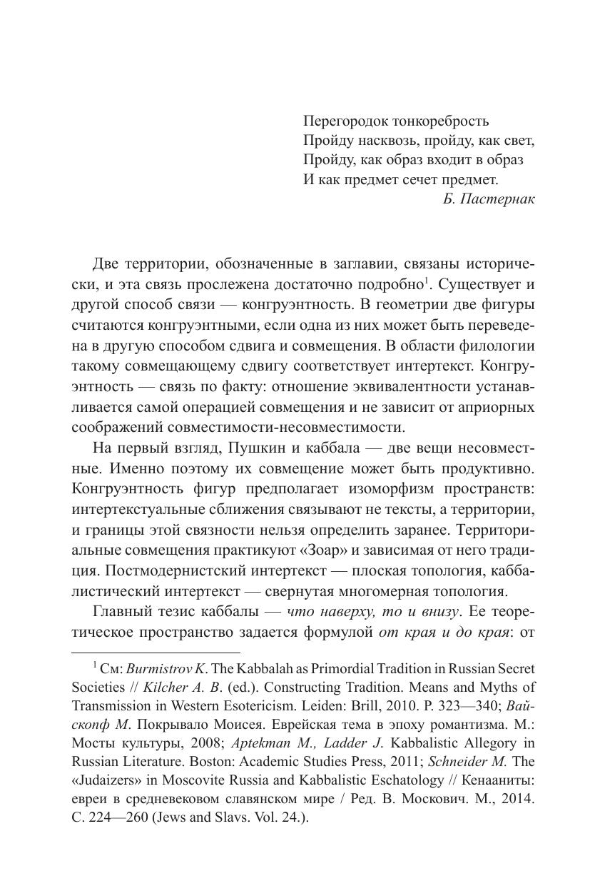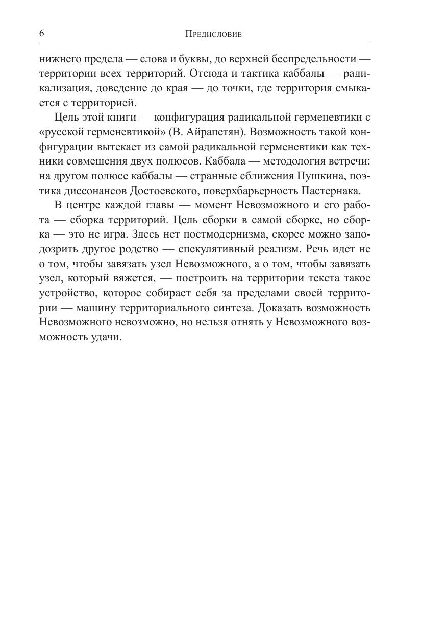 Цель книги — конфигурация каббалистической герменевтики с русской филологической и литературной традицией. Речь идет о сборке территорий, о многомерном ансамбле текстуальных и онтологических пространств. «Компаративизм без берегов» книги «Зоар» сопоставляется с интертекстуальным подходом и лингвистической компаративистикой. Каббала понимается как проект совместности, содержание которого раскрывается во встречных сближениях с текстами Пушкина, Достоевского, Пастернака.