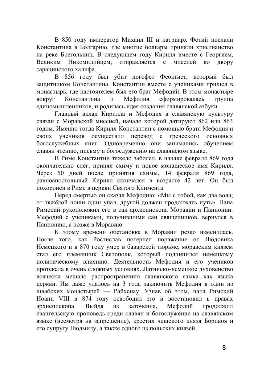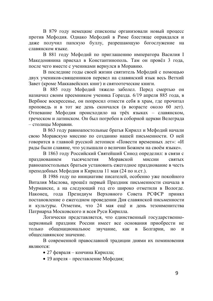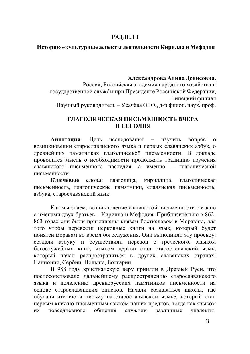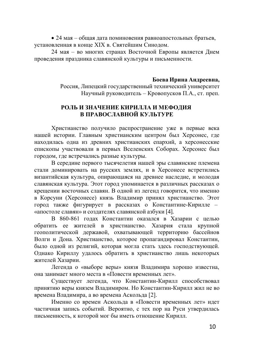 В сборник трудов научно-практической конференции, состоявшейся 24 мая 2021 г. в Липецком филиале РАНХиГС, вошли материалы студенческих докладов, посвященных рассмотрению историко-культурных аспектов деятельности первоучителей Кирилла и Мефодия, вопросов функционирования и изучения русского языка, переводческой деятельности, сохранения православных духовно-нравственных традиций в образовании. Материалы публикуются в авторской редакции.