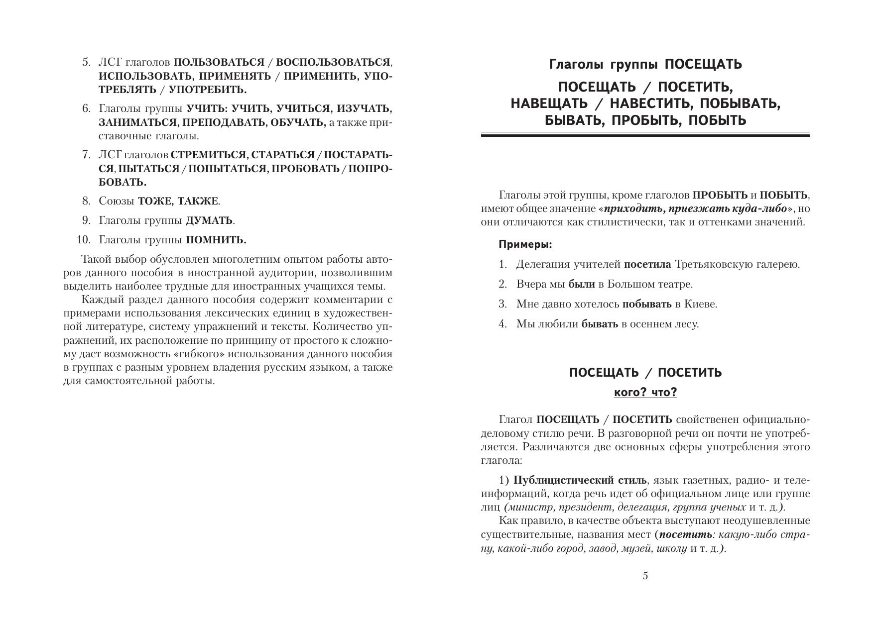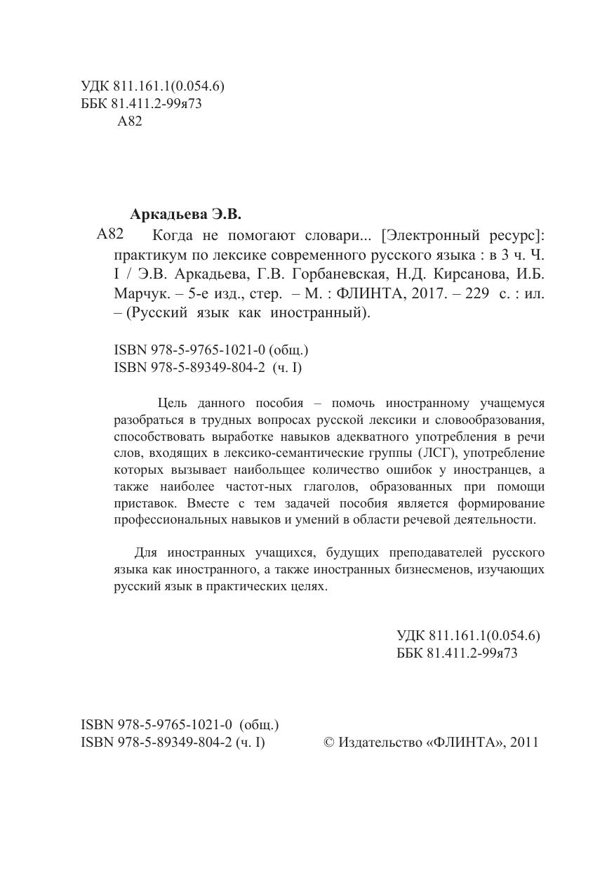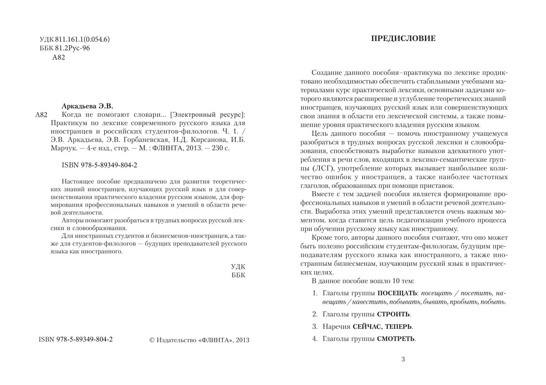 Цель данного пособия – помочь иностранному учащемуся разобраться в трудных вопросах русской лексики и словообразования, способствовать выработке навыков адекватного употребления в речи слов, входящих в лексико-семантические группы (ЛСГ), употребление которых вызывает наибольщее количество ошибок у иностранцев, а также наиболее частот-ных глаголов, образованных при помощи приставок. Вместе с тем задачей пособия является формирование профессиональных навыков и умений в области речевой деятельности. Для иностранных учащихся, будущих преподавателей русского языка как иностранного, а также иностранных бизнесменов, изучающих русский язык в практических целях.