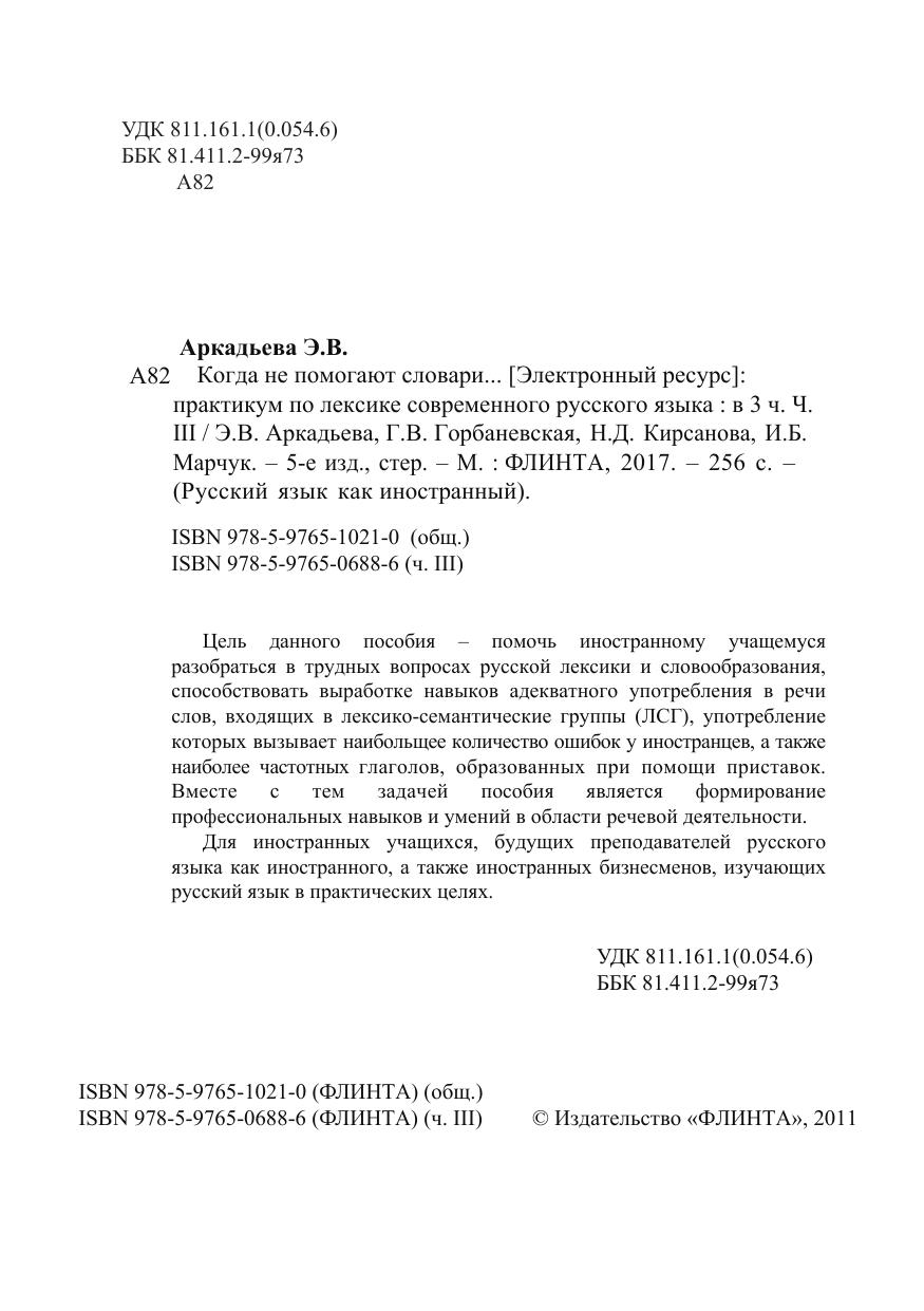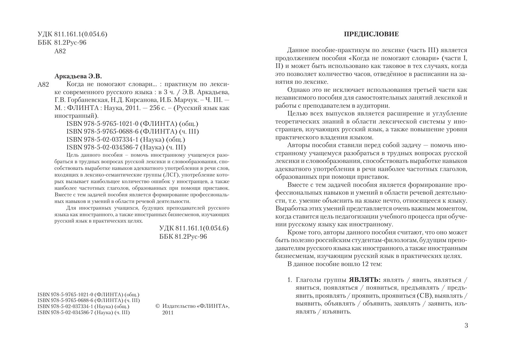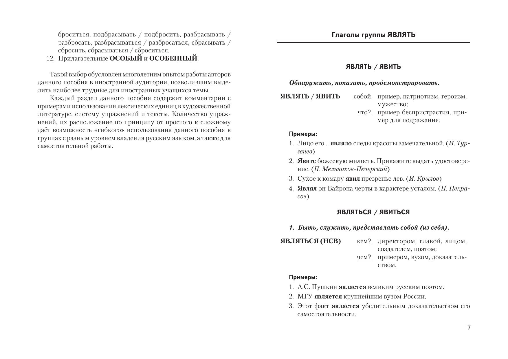 Цель данного пособия – помочь иностранному учащемуся разобраться в трудных вопросах русской лексики и словообразования, способствовать выработке навыков адекватного употребления в речи слов, входящих в лексико-семантические группы (ЛСГ), употребление которых вызывает наибольщее количество ошибок у иностранцев, а также наиболее частот-ных глаголов, образованных при помощи приставок. Вместе с тем задачей пособия является формирование профессиональных навыков и умений в области речевой деятельности. Для иностранных учащихся, будущих преподавателей русского языка как иностранного, а также иностранных бизнесменов, изучающих русский язык в практических целях.