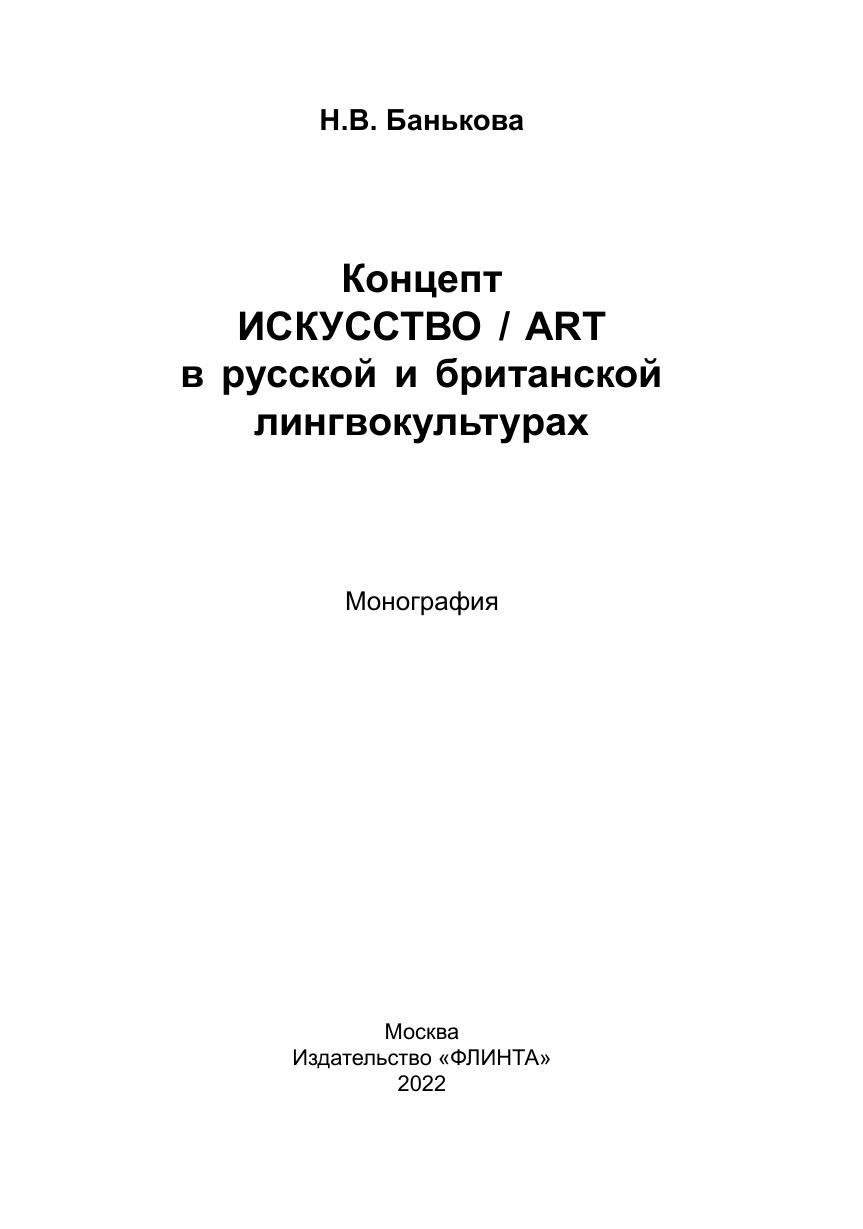 В работе представлен сопоставительный анализ языковых репрезентаций концепта «искусство» / “art” в русской и британской лингвокультурах. Впервые концепт «искусство» / “art” рассматривается комплексно, выявляется смысловое содержание его элементов: понятийного, образного и ценностного.