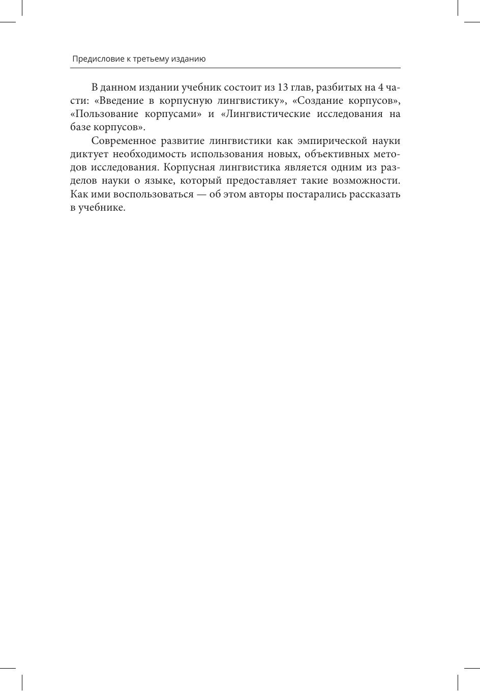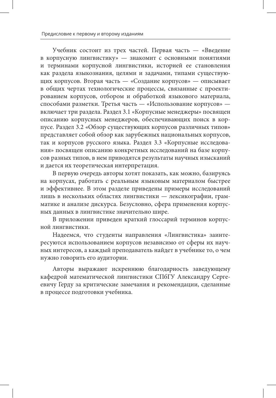 Учебник знакомит с концепциями корпусной лингвистики, дает возможность освоить азы корпусных технологий, приобрести навыки работы с корпусами, определить место дисциплины и собственно корпусов в ряду информационных технологий. Базой для создания учебника послужили исследовательская работа и преподавательская деятельность авторов. Предназначен для студентов, магистрантов и аспирантов филологических и педагогических специальностей, а также для всех интересующихся вопросами корпусной лингвистики.