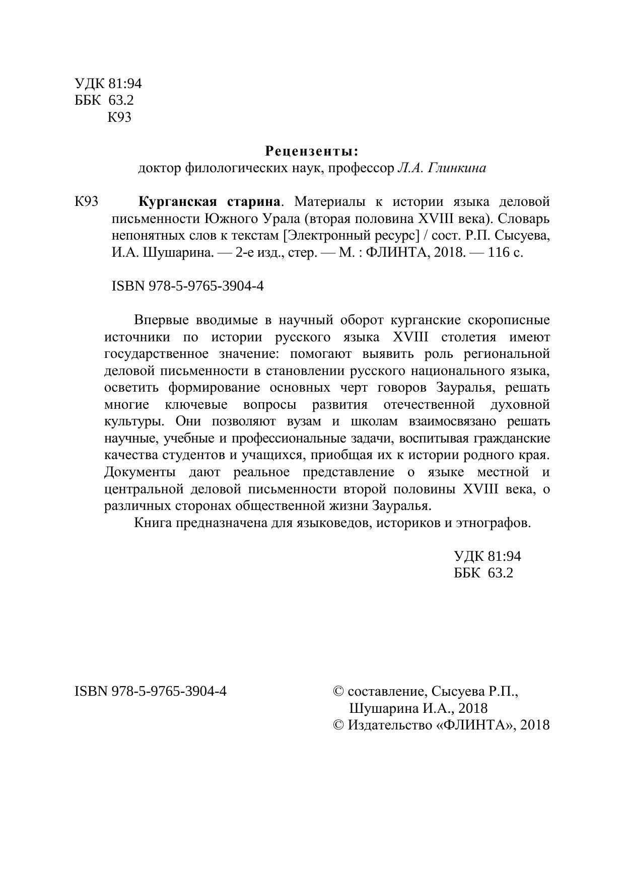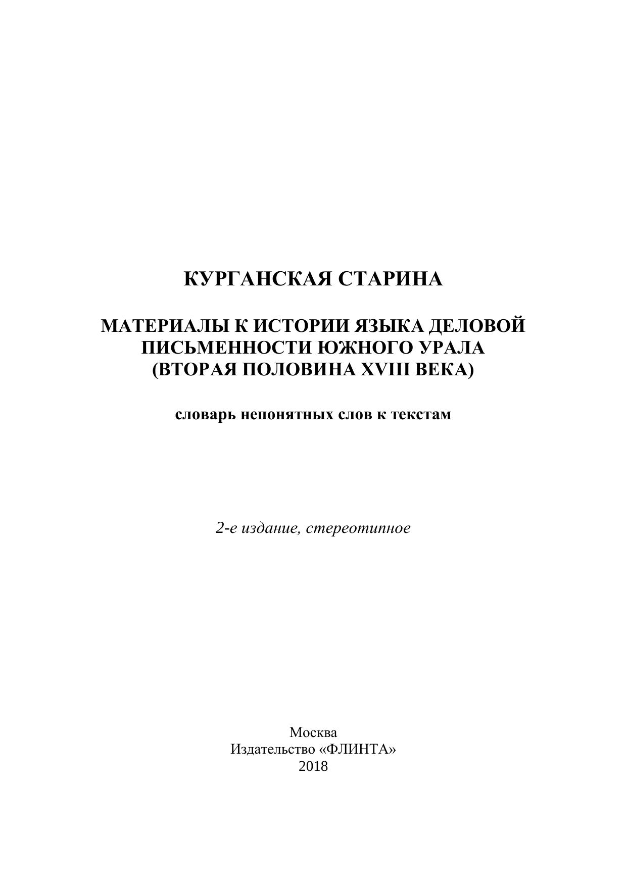 Курганская старина. Материалы к истории языка деловой письменности Южного Урала (вторая половина XVIII века)
