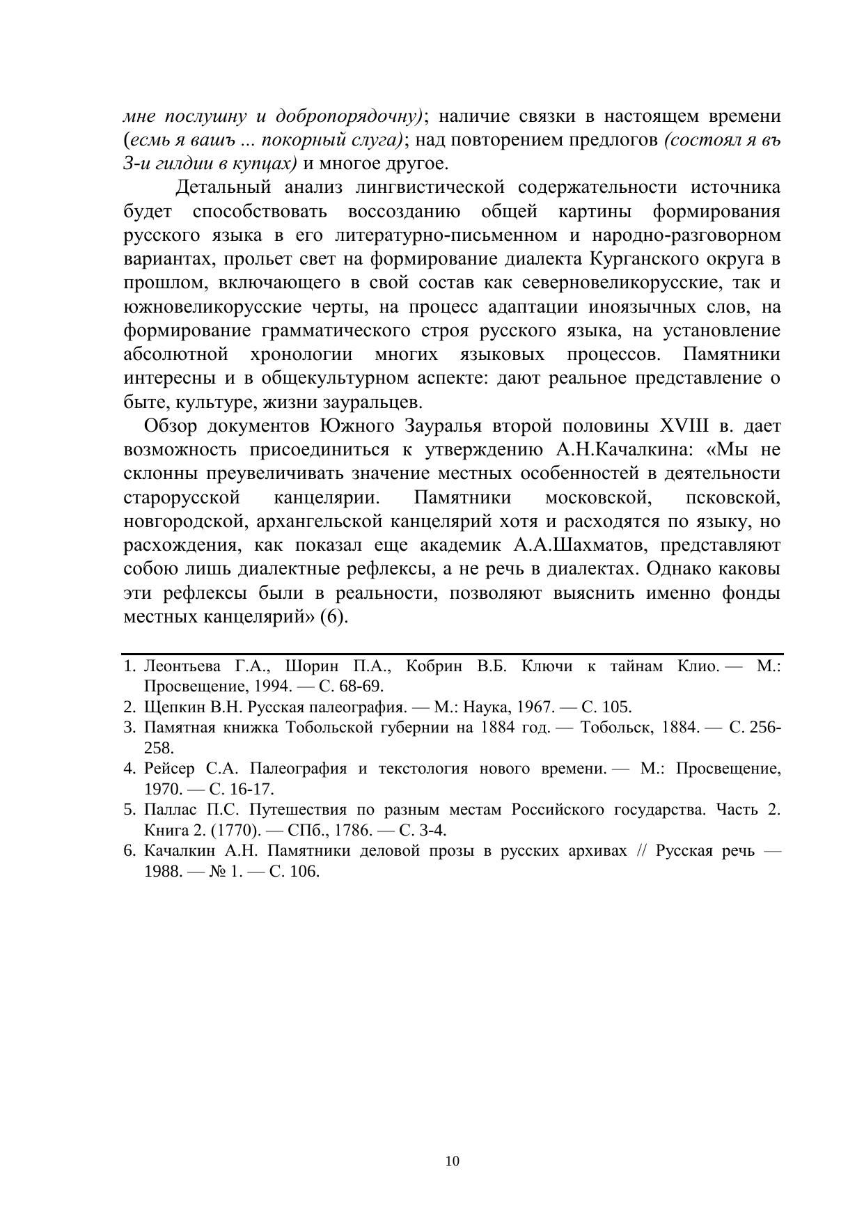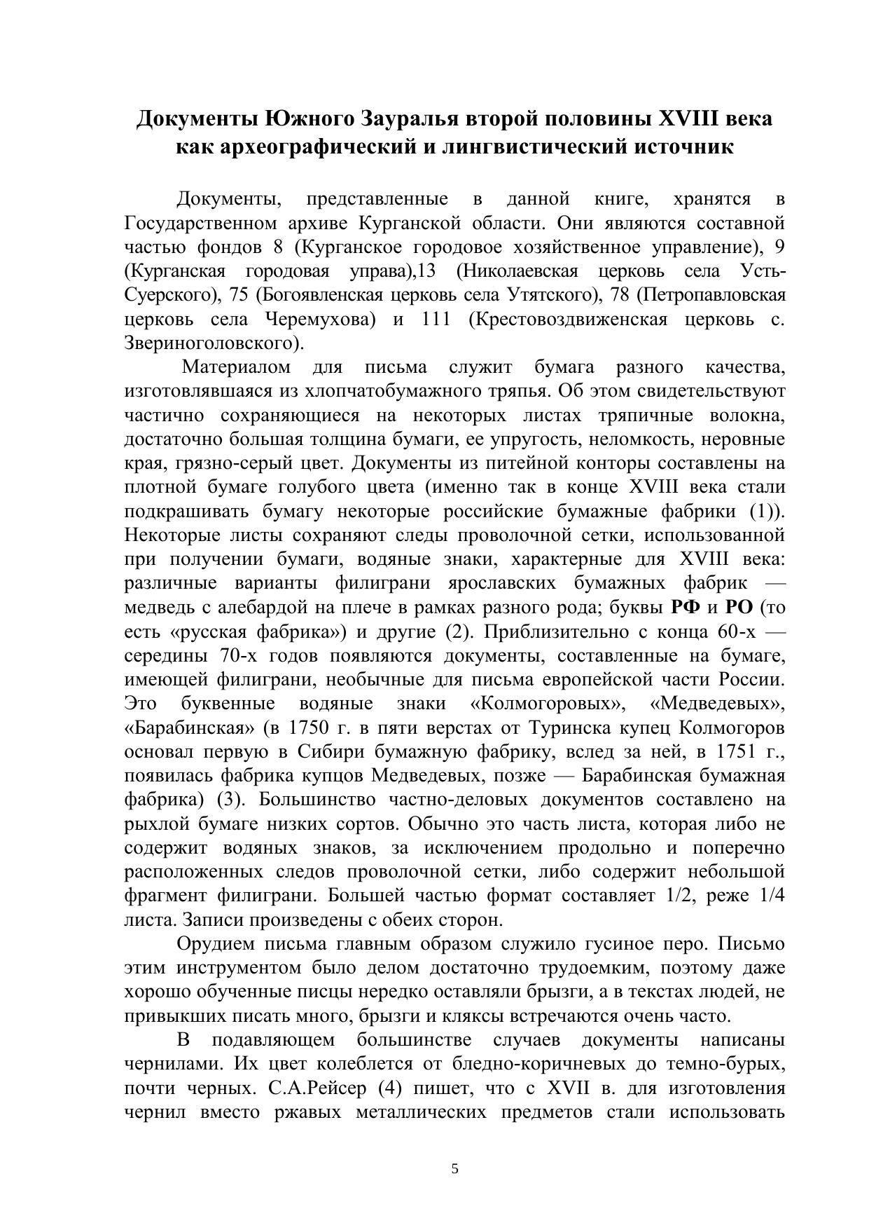 Впервые вводимые в научный оборот курганские скорописные источники по истории русского языка XVIII столетия имеют государственное значение: помогают выявить роль региональной деловой письменности в становлении русского национального языка, осветить формирование основных черт говоров Зауралья, решать многие ключевые вопросы развития отечественной духовной культуры. Они позволяют вузам и школам взаимосвязано решать научные, учебные и профессиональные задачи, воспитывая гражданские качества студентов и учащихся, приобщая их к истории родного края. Документы дают реальное представление о языке местной и центральной деловой письменности второй половины XVIII века, о различных сторонах общественной жизни Зауралья. Книга предназначена для языковедов, историков и этнографов.