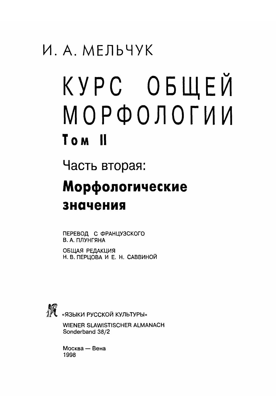 «Курс общей морфологии» представляет собой КОМПЕНДИУМ современных знаний в области морфологии естественных языков. Объектом его является слово — во всех его смысловых, формальных и комбинаторных аспектах. Для описания свойств и поведения слов в языках Земли разработана дедуктивная система строгих понятий, охватывающих все области морфологии. Основанный как на собственных результатах 30-летних исследований автора, так и на доступных публикациях, «Курс» оказывается совершенно уникальным изданием: в лингвистической литературе не существует труда по морфологии такого охвата. Второй том «Курса общей морфологии» посвящен исчислению, типологии и детальному описанию морфологических значений в языках мира. Книга предназначена для лингвистов всех специальностей и может быть использована в качестве учебного пособия для студентов филологических вузов.