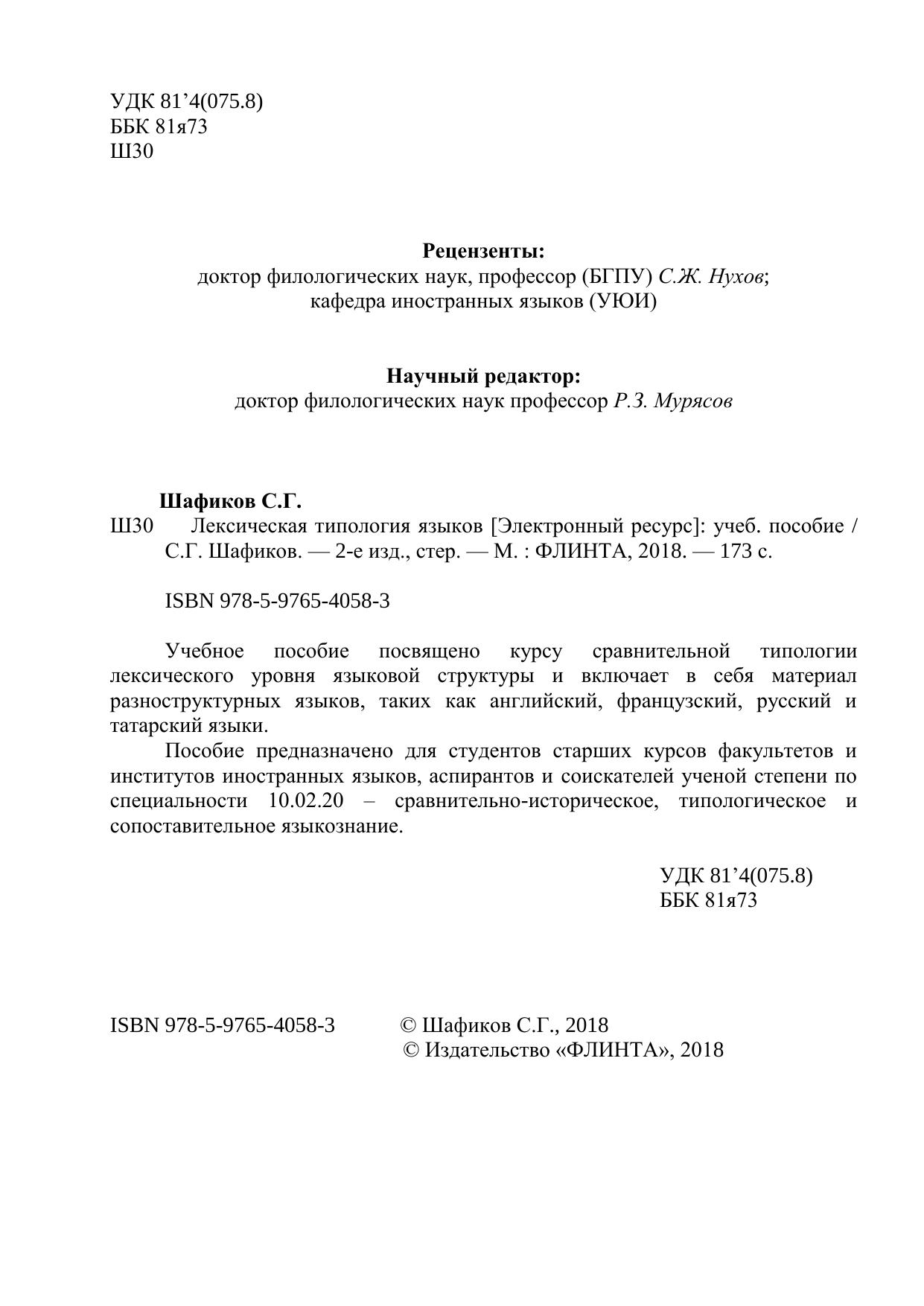 Учебное пособие посвящено курсу сравнительной типологии лексического уровня языковой структуры и включает в себя материал разноструктурных языков, таких как английский, французский, русский и татарский языки.