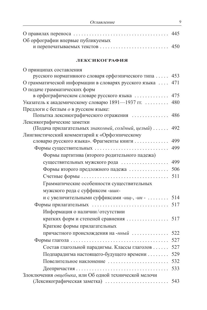 Сборник включает наиболее важные работы, отражающие основные научные интересы автора. Главная область - морфология русского языка в ее формальном аспекте, естественно включающая морфонологию. Второй раздел включает статьи, представляющие еще одну область интересов автора - орфографию. Они отражают участие автора в подготовке неосуществленного проекта реформы орфографии в начале 1960-х годов и в подготовке нового варианта "Правил русской орфографии и пунктуации" в 1990-2000-е годы. Третий раздел объединяет статьи, затрагивающие вопросы лексикографии. Они связаны главным образом с работой автора над орфоэпическим словарем русского языка. Приложения включают статьи и заметки на разные темы, воспоминания и переписку. Для научных работников, широкого круга специалистов.
