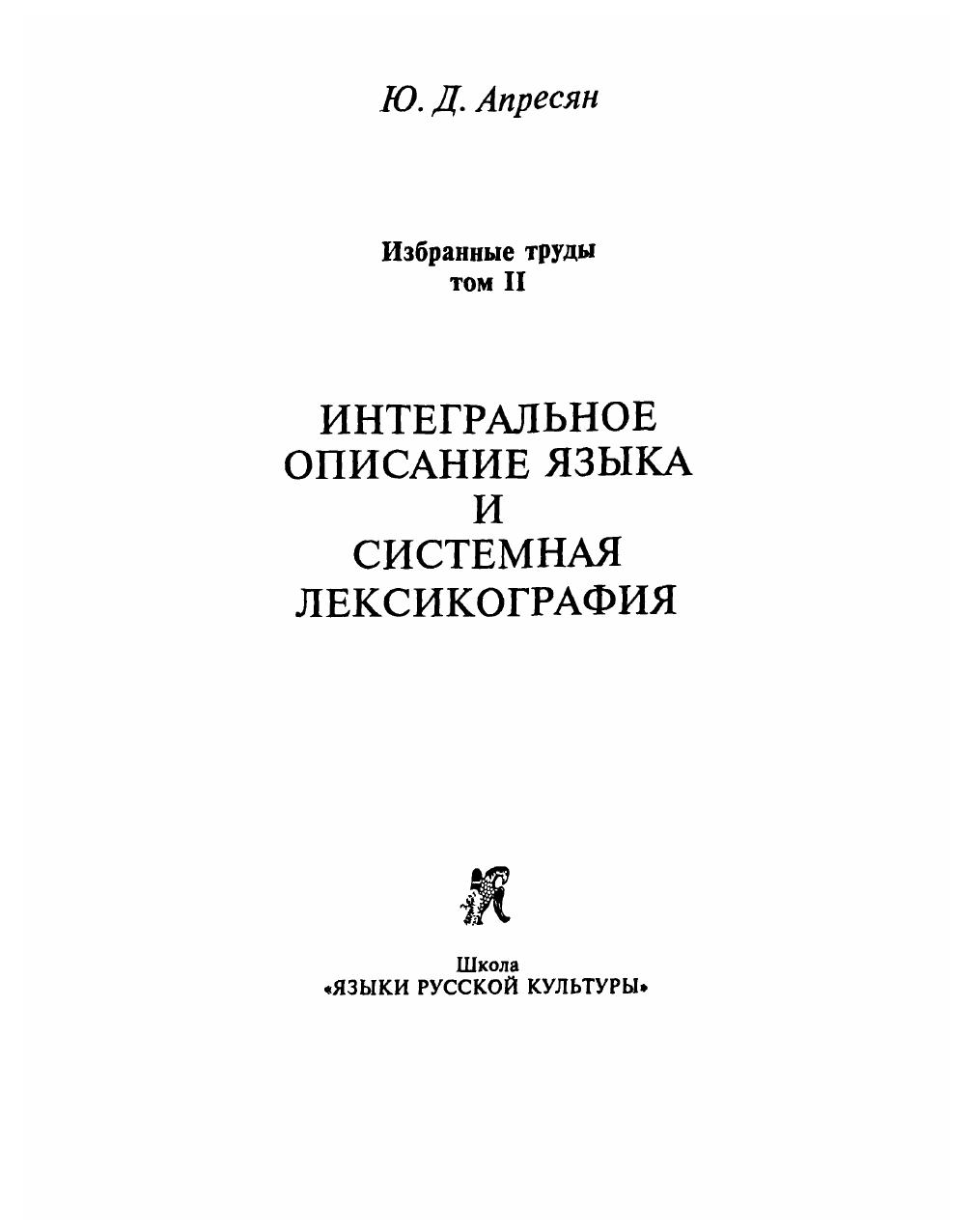 Избранные труды. Т. II.Интегральное описание языка и системная лексикография