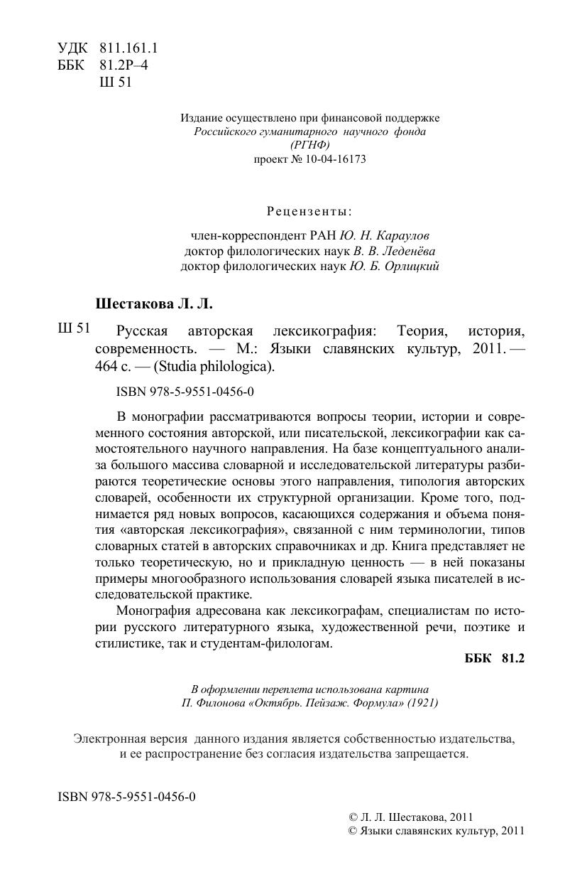 В монографии рассматриваются вопросы теории, истории и современного состояния авторской, или писательской, лексикографии как самостоятельного научного направления. На базе концептуального анализа большого массива словарной и исследовательской литературы разбираются теоретические основы этого направления, типология авторских словарей, особенности их структурной организации. Кроме того, поднимается ряд новых вопросов, касающихся содержания и объема понятия "авторская лексикография", связанной с ним терминологии, типов словарных статей в авторских справочниках и др. Книга представляет не только теоретическую, но и прикладную ценность - в ней показаны примеры многообразного использования словарей языка писателей в исследовательской практике. Монография адресована как лексикографам, специалистам по истории русского литературного языка, художественной речи, поэтике и стилистике, так и студентам-филологам.