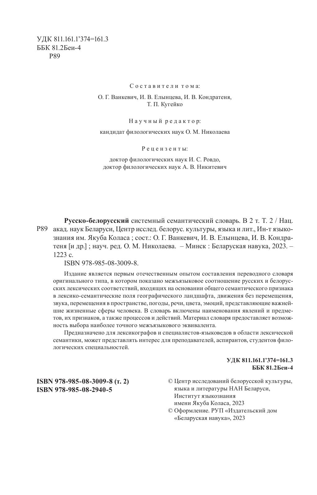 Русско-белорусский системный семантический словарь. В 2 т. Т. 2