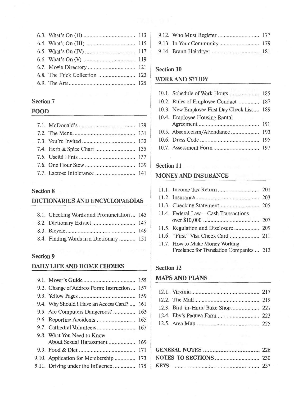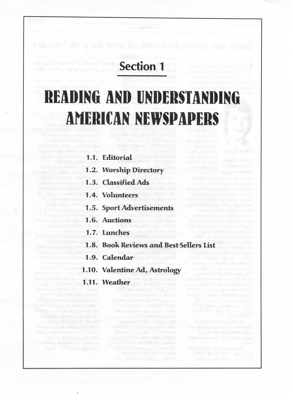 Книга включает тексты по следующим темам: «Американские газеты», «Политика», «Путешествия и туризм», «Развлечения»,