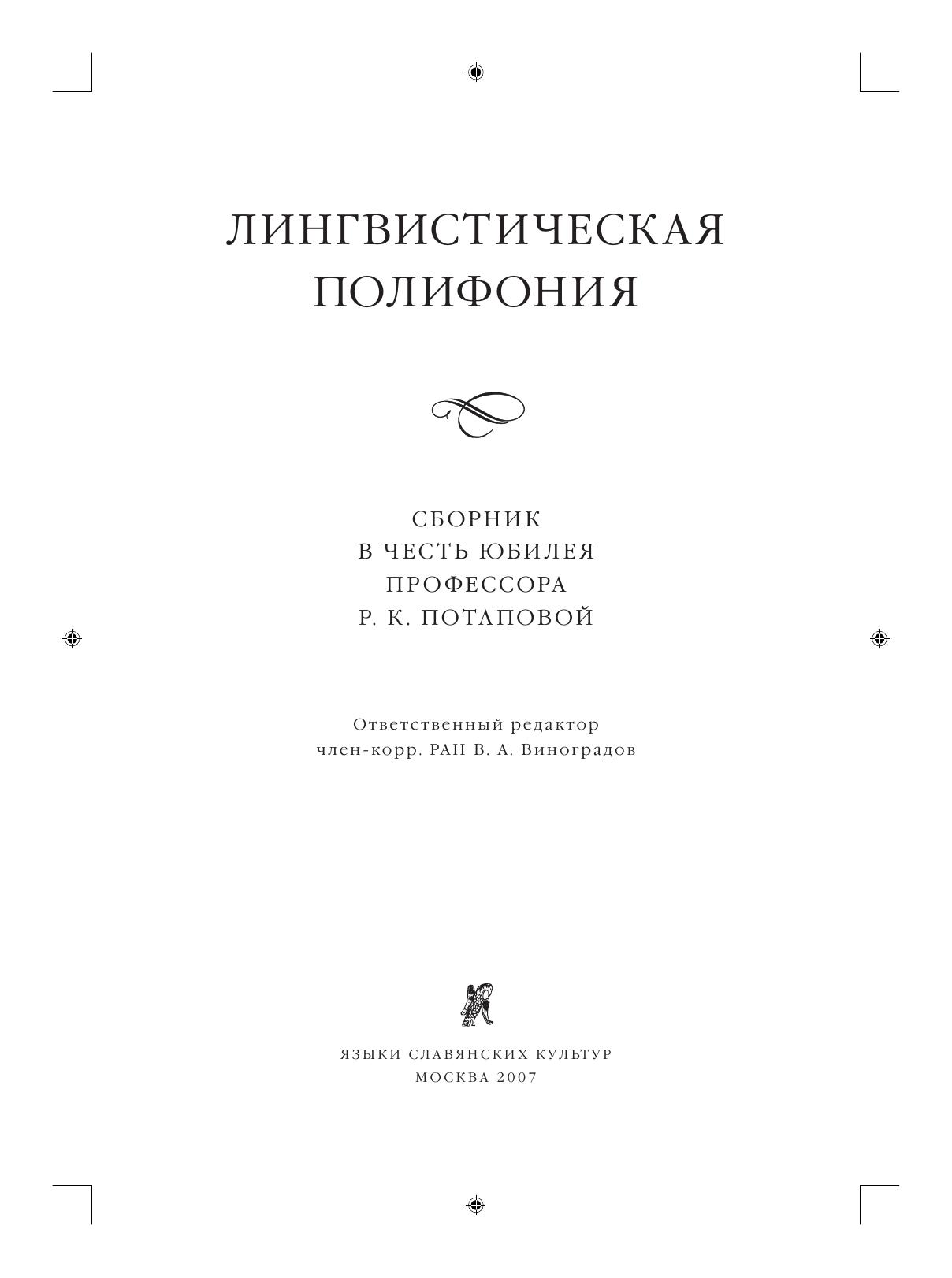 Лингвистическая полифония: Сборник в честь Р. К. Потаповой