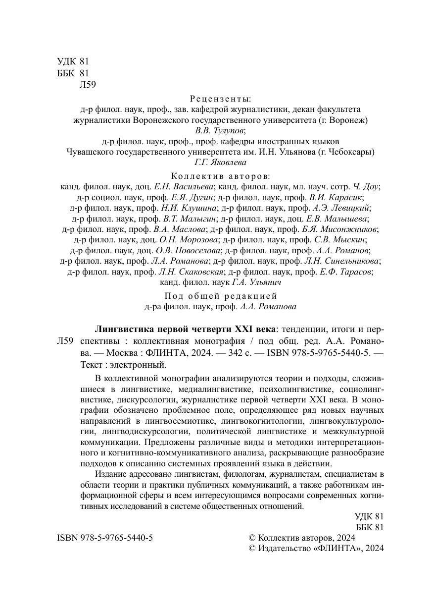 В коллективной монографии анализируются теории и подходы, сложившиеся в лингвистике, медиалингвистике, психолингвистике, социолингвистике, дискурсологии, журналистике первой четверти XXI века. В монографии обозначено проблемное поле, определяющее ряд новых научных направлений в лингвосемиотике, лингвокогнитологии, лингвокультурологии, лингводискурсологии, политической лингвистике и межкультурной коммуникации. Предложены различные виды и методики интерпретационного и когнитивно-коммуникативного анализа, раскрывающие разнообразие подходов к описанию системных проявлений языка в действии. Издание адресовано лингвистам, филологам, журналистам, специалистам в области теории и практики публичных коммуникаций, а также работникам информационной сферы и всем интересующимся вопросами современных когнитивных исследований в системе общественных отношений.