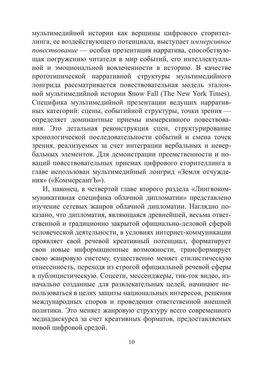 Описаны жанры: новость, комментарий, мультимедийная история, а также жанры облачной дипломатии.