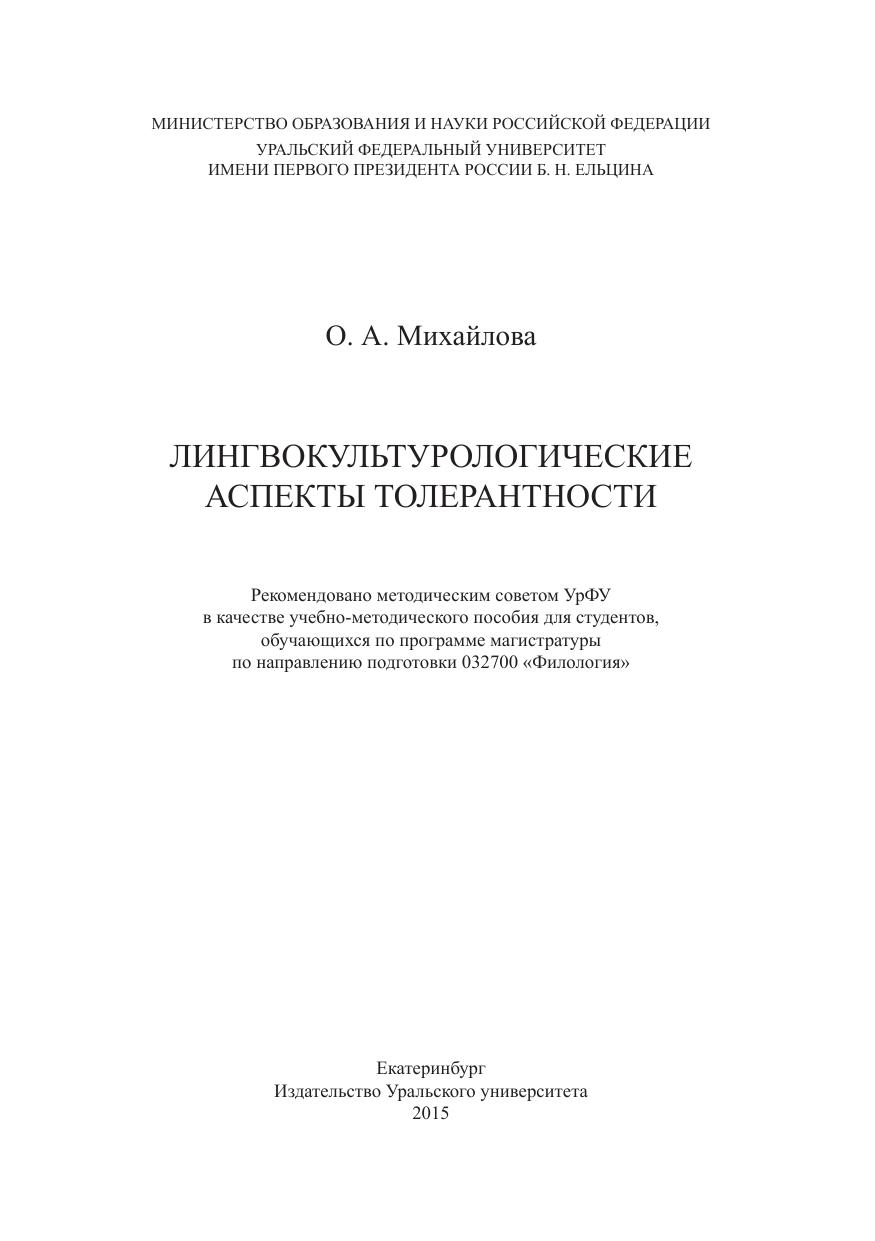 Лингвокультурологические аспекты толерантности: учеб.-метод. пособие