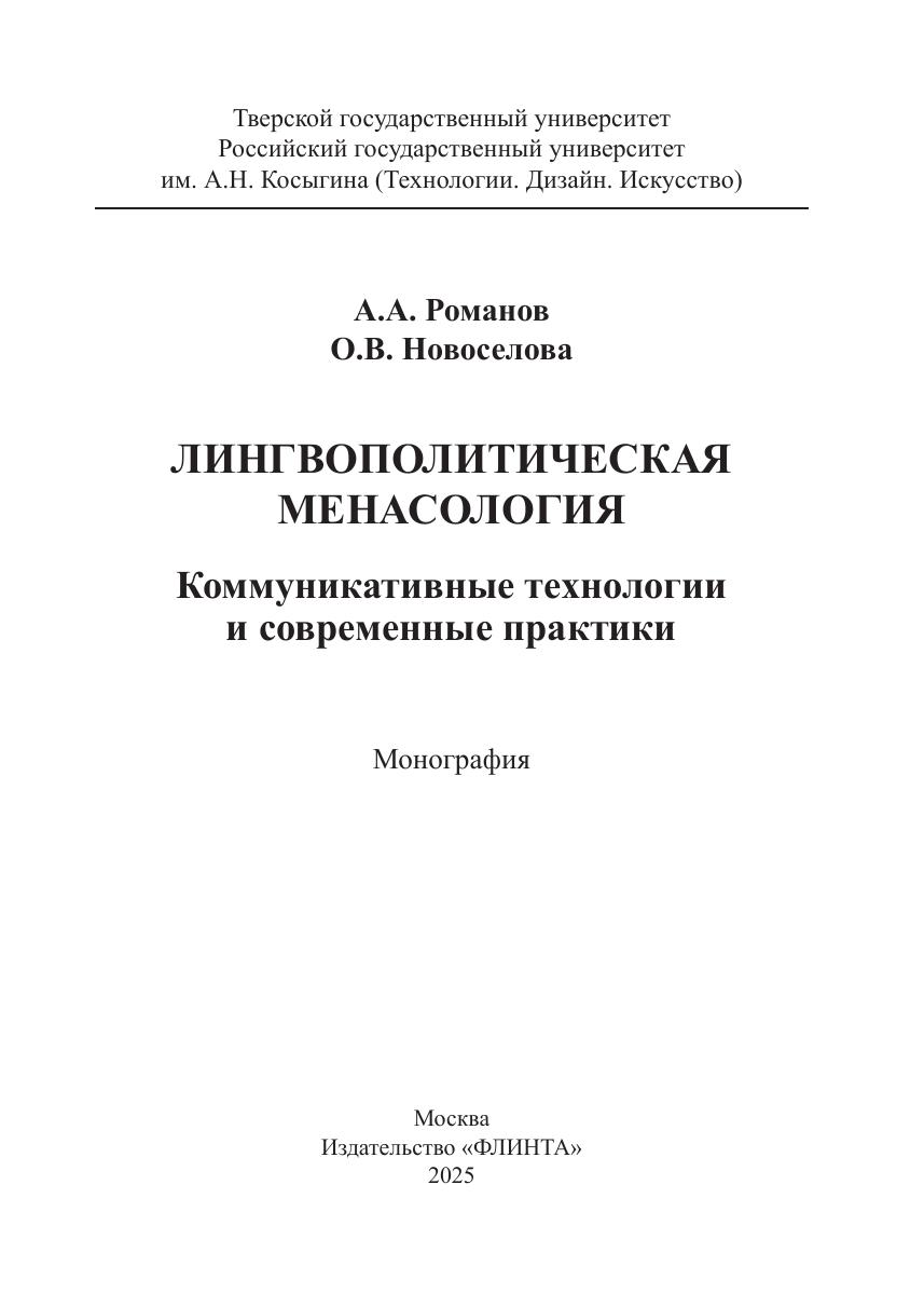 Лингвополитическая менасология: коммуникативные технологии и современные практики