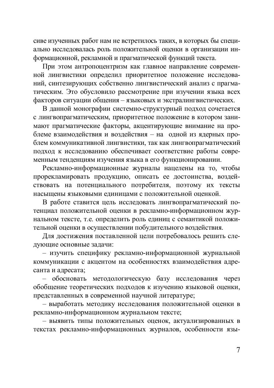 Лингвопрагматический потенциал положительной оценки в рекламно-информационном журнальном тексте