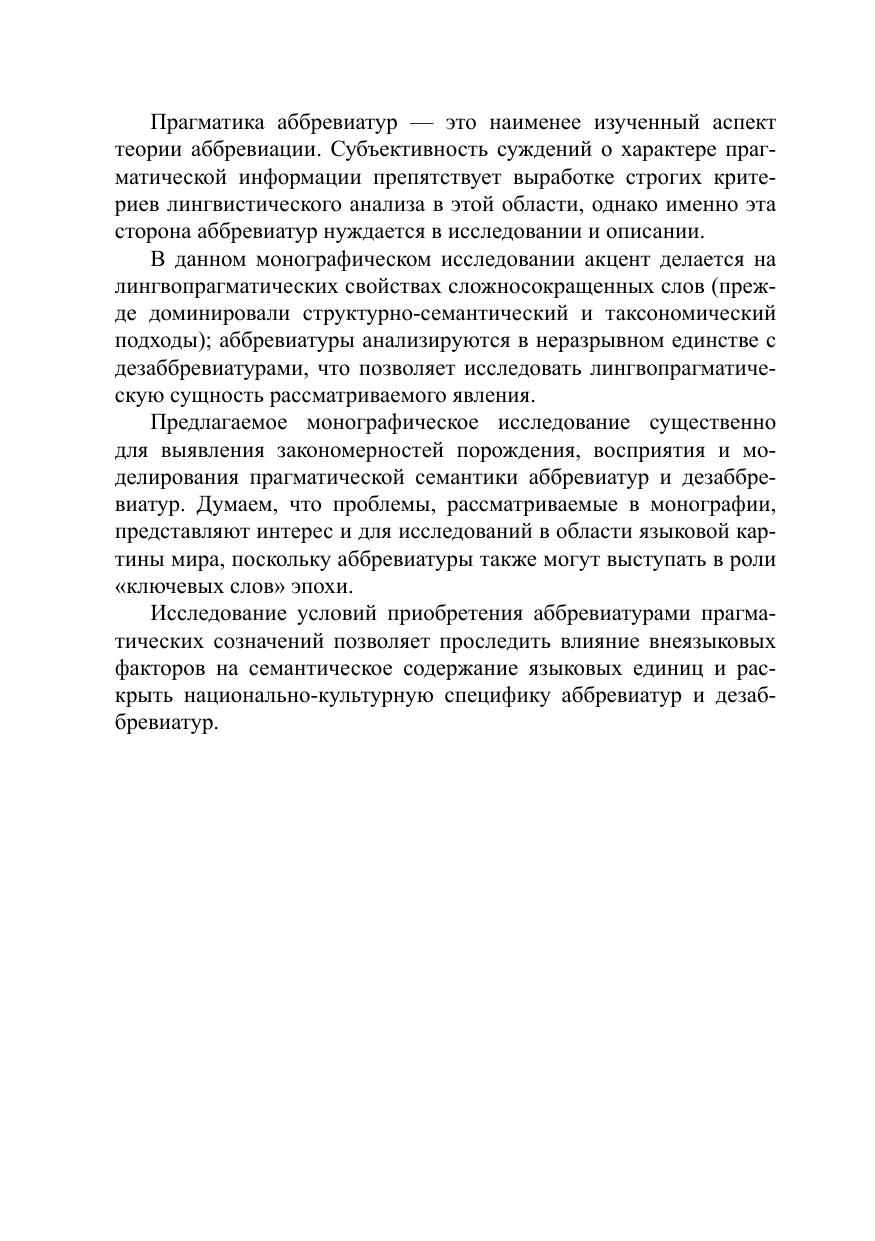 Монография посвящена прагматике активных процессов словообразования в русском языке. Впервые аббревиатуры анализируются в неразрывном единстве с дезаббревиатурами.