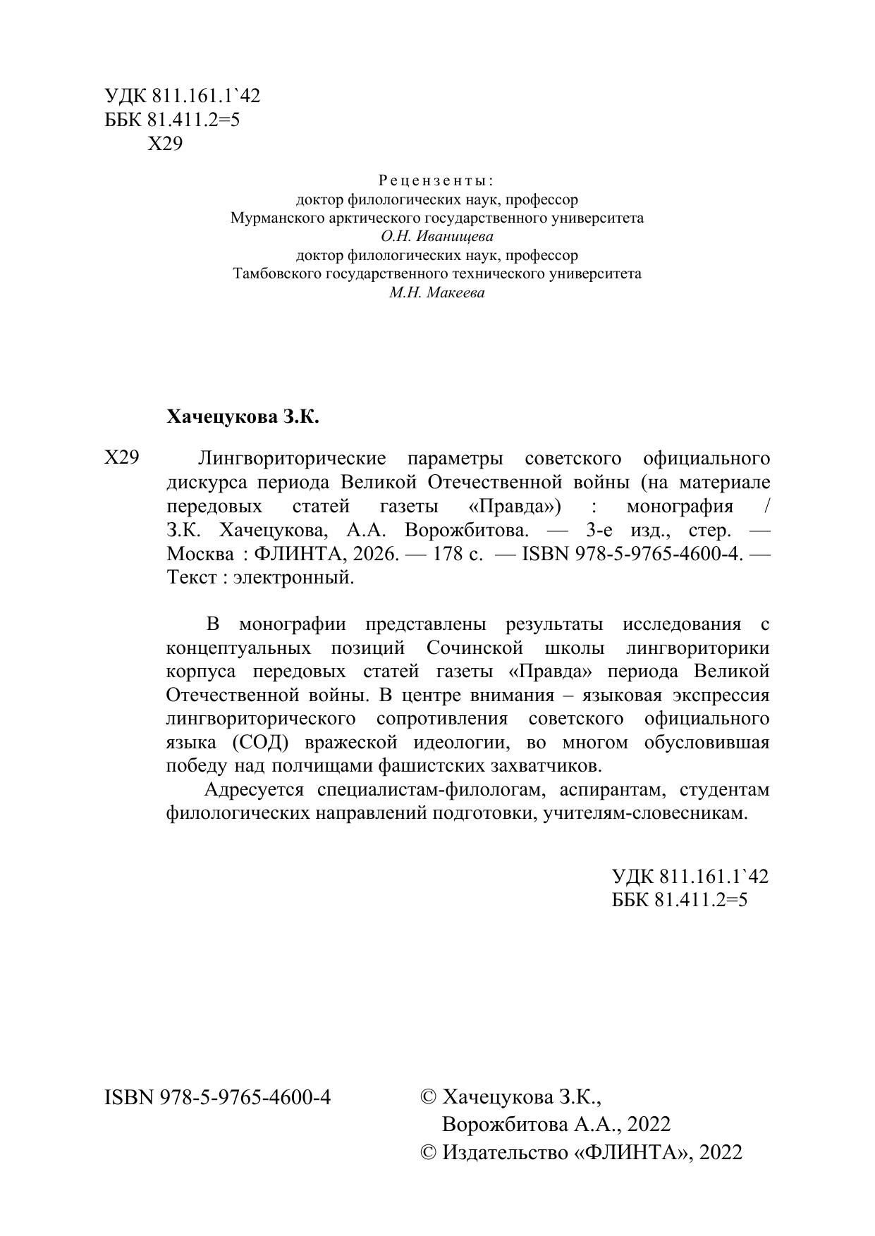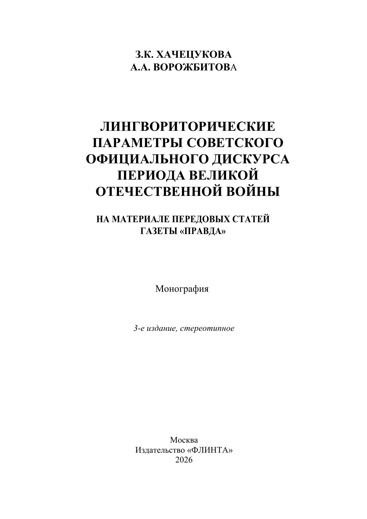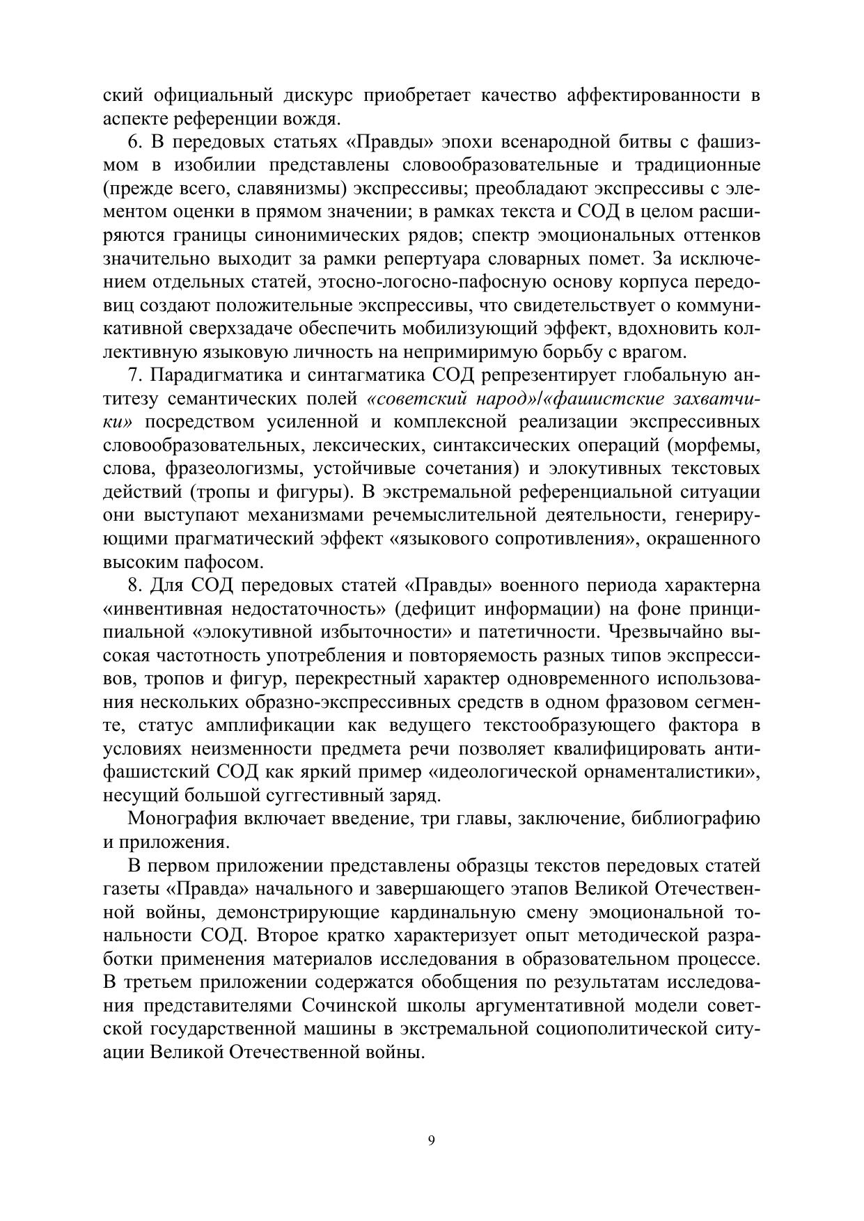 В монографии представлены результаты исследования с концептуальных позиций Сочинской школы лингвориторики корпуса передовых статей газеты «Правда» периода Великой Отечественной войны. В центре внимания - языковая экспрессия лингвориторического сопротивления советского официального языка (СОД) вражеской идеологии, во многом обусловившая победу над полчищами фашистских захватчиков. Адресуется специалистамфилологам, аспирантам, студентам филологических направлений подготовки, учителямсловесникам.
