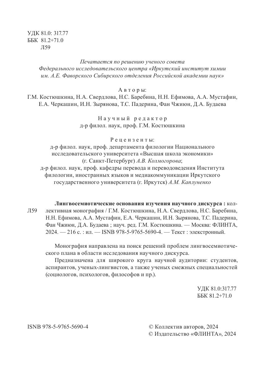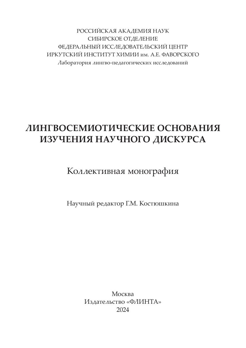 Монография направлена на поиск решений проблем лингвосемиотиче-ского плана в области исследования научного дискурса.