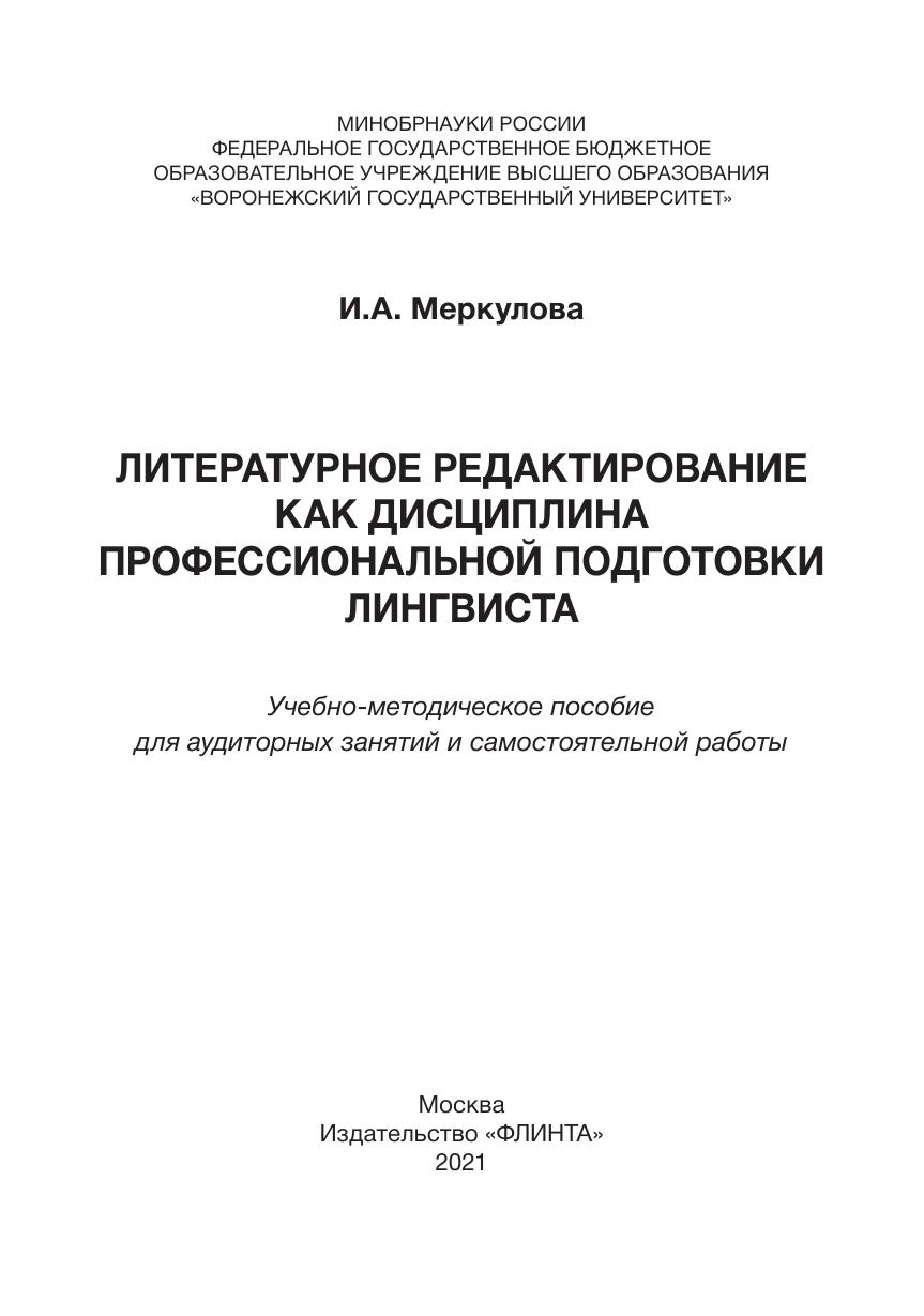 Литературное редактирование как дисциплина профессиональной подготовки лингвиста