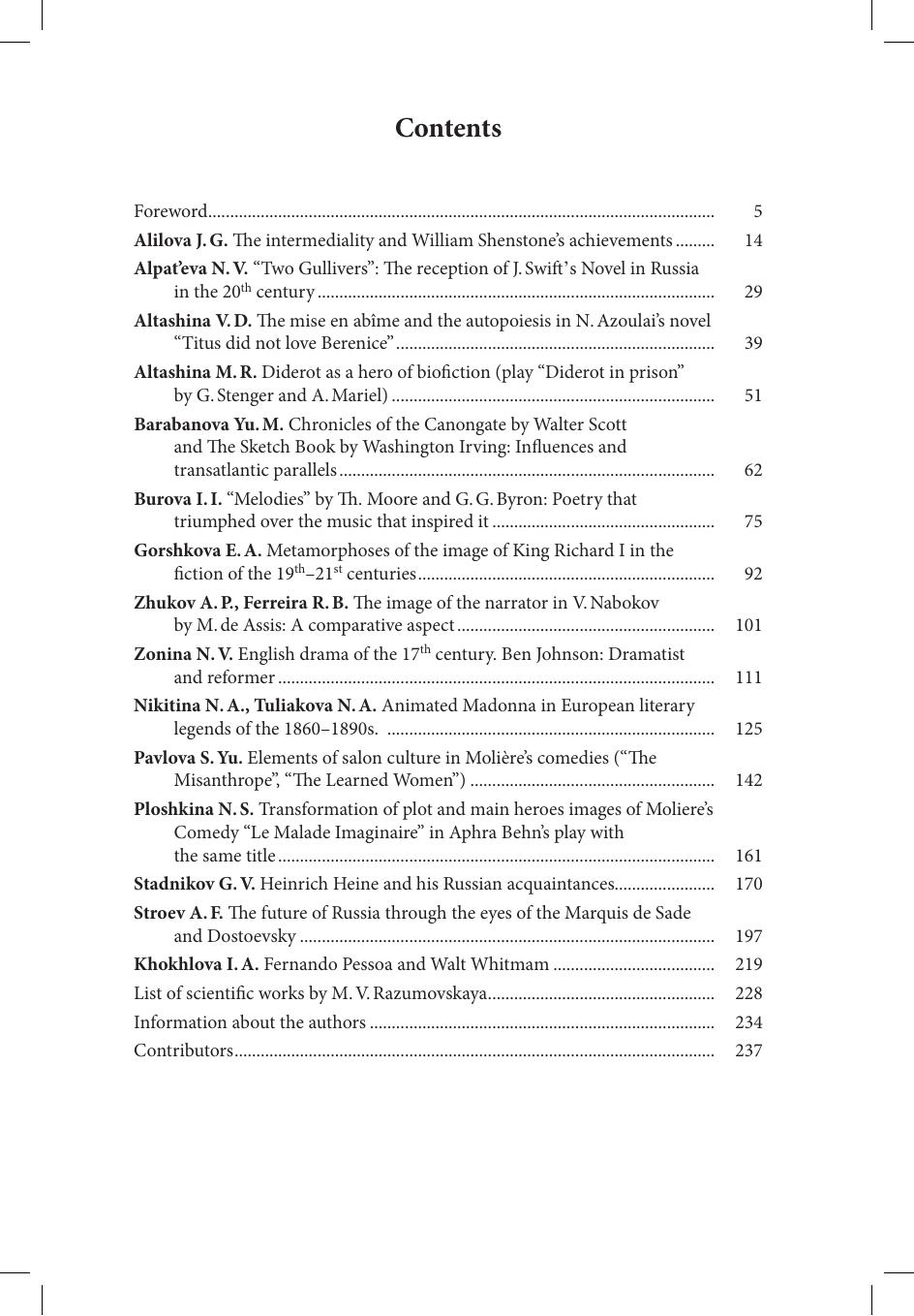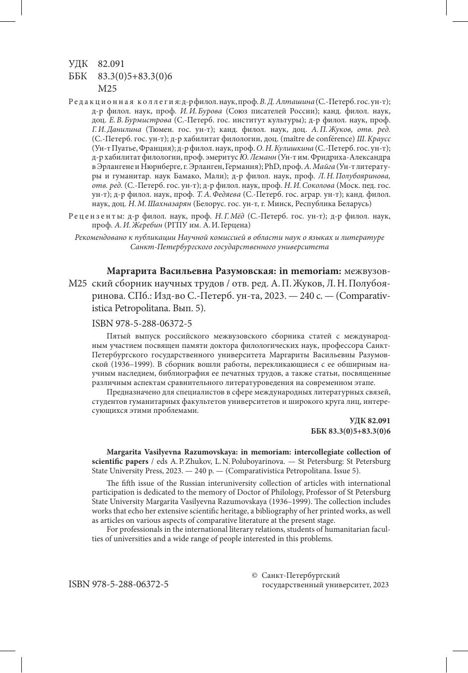 Пятый выпуск российского межвузовского сборника статей с международным участием посвящен памяти доктора филологических наук, профессора Санкт-Петербургского государственного университета Маргариты Васильевны Разумовской (1936-1999). В сборник вошли работы, перекликающиеся с ее обширным научным наследием, библиография ее печатных трудов, а также статьи, посвященные различным аспектам сравнительного литературоведения на современном этапе. Предназначено для специалистов в сфере международных литературных связей, студентов гуманитарных факультетов университетов и широкого круга лиц, интересующихся этими проблемами.